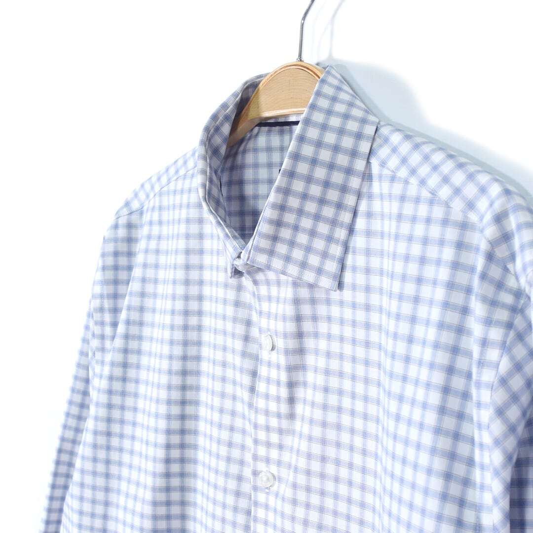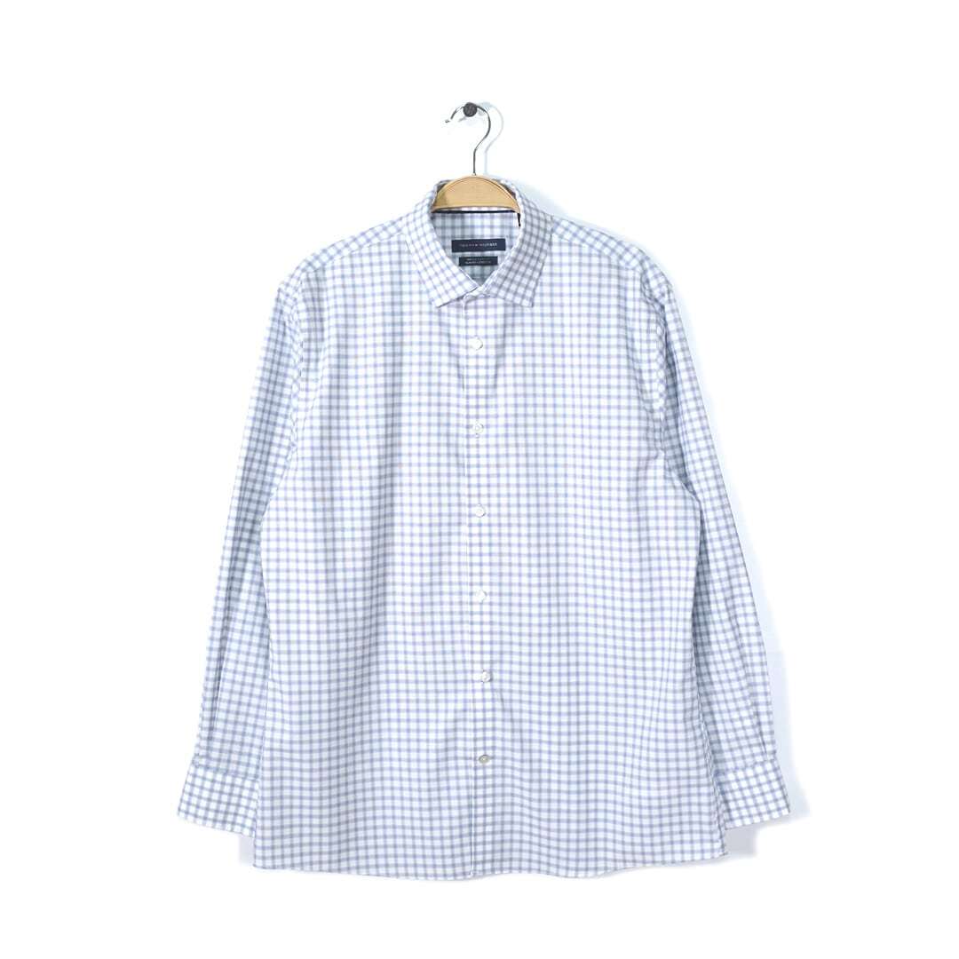トミーヒルフィガー カジュアルシャツ ワイドカラー スリムフィット 青白チェック TOMMY HILFIGER サイズL 古着 @CA1335