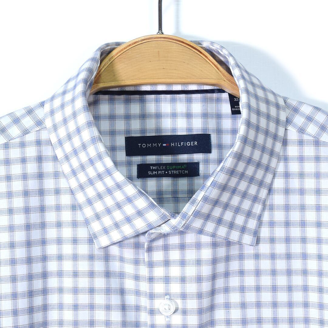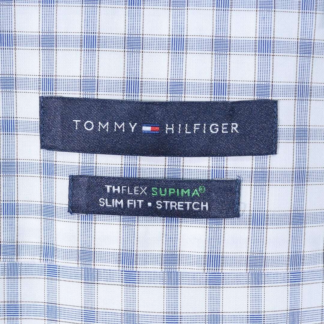 【送料無料】トミーヒルフィガー カジュアルシャツ ワイドカラー スリムフィット 青白チェック TOMMY HILFIGER サイズL 古着 @CA1335