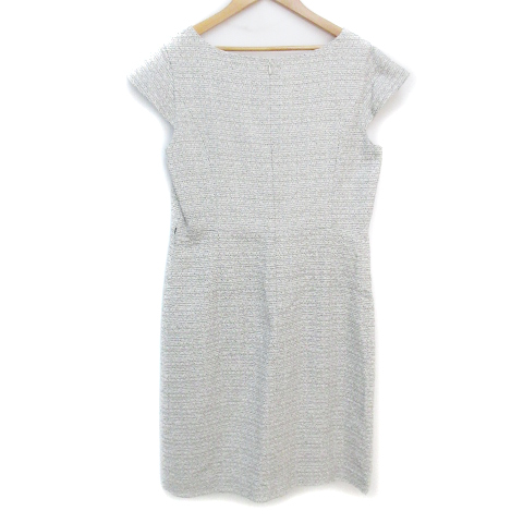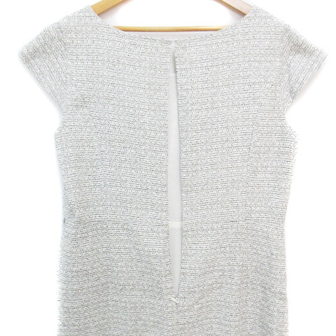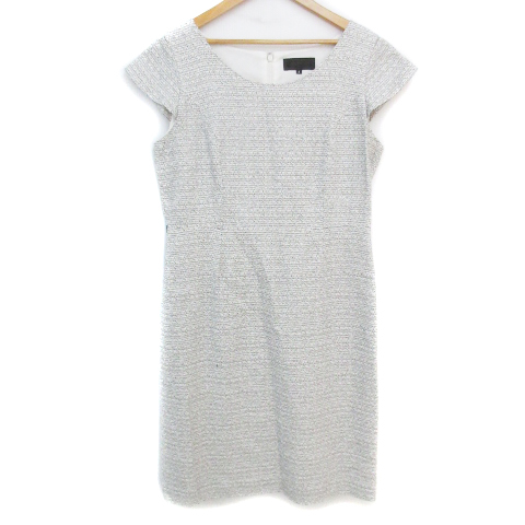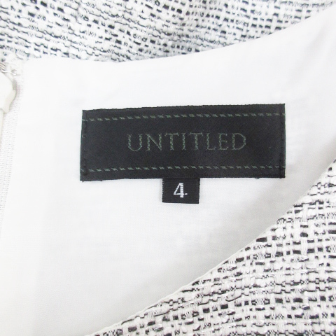 アンタイトル ツイードワンピース フレアワンピース ひざ丈 半袖 ラウンドネック ラメ 4 白 黒 ホワイト ブラック /FF7 レディース