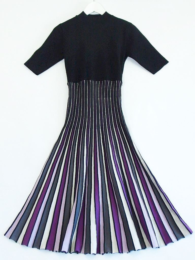 | 商品名 | ニット切替 ロングワンピース ハイネック 五分袖 ナイロン |