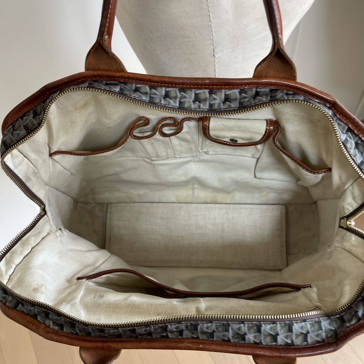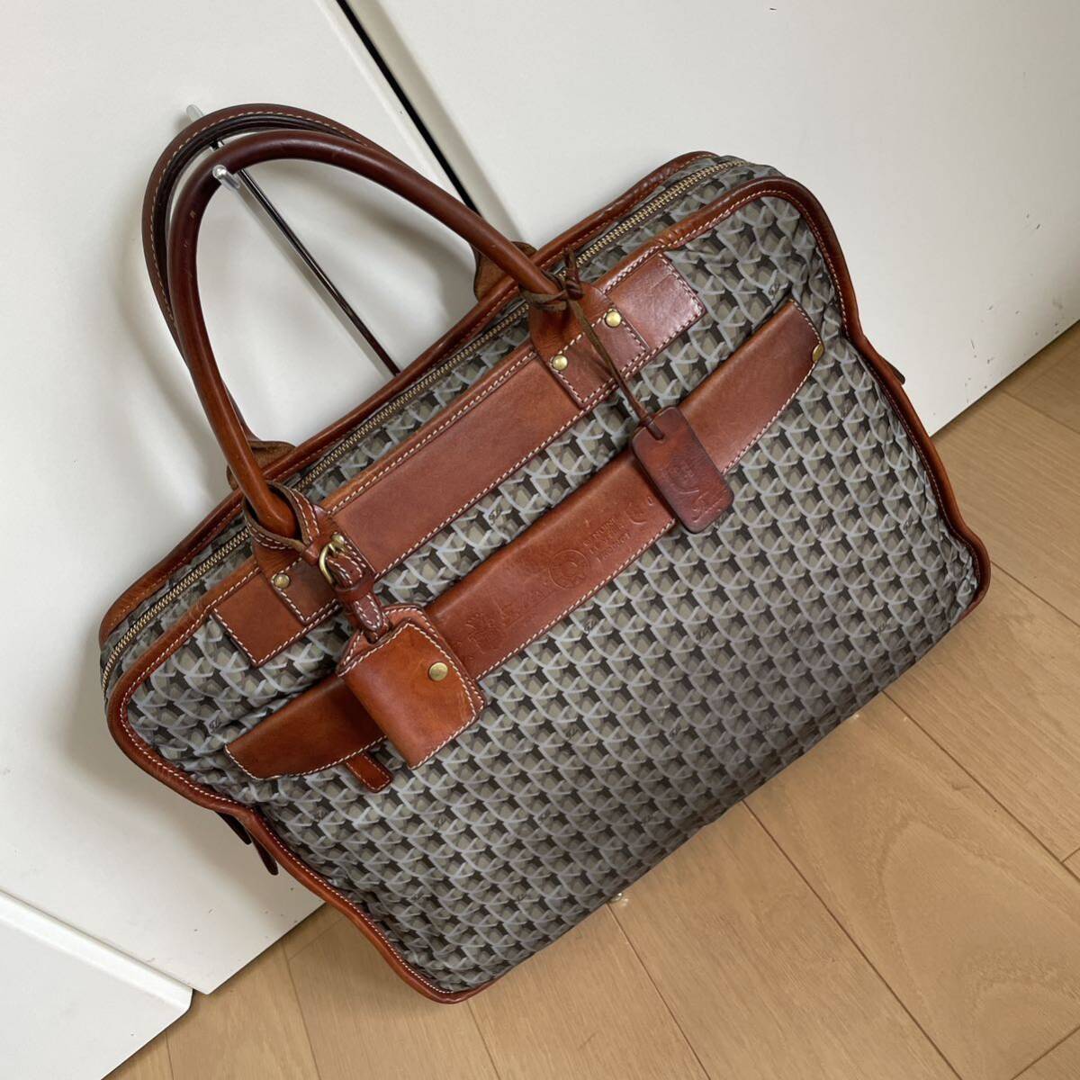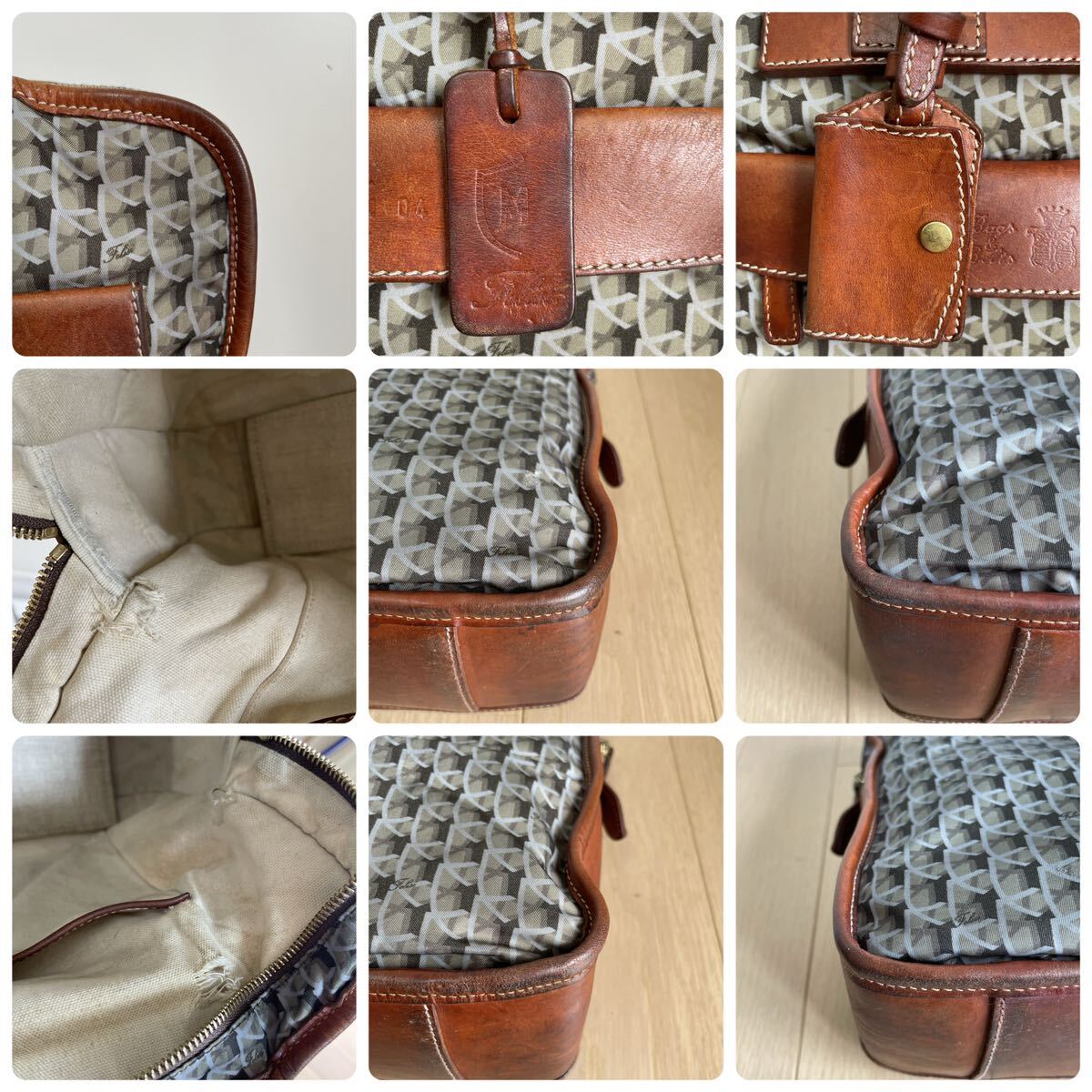 前ハンドル部分には取り外し可能なネームプレート、モノグラムロゴが入った革タグ付き。