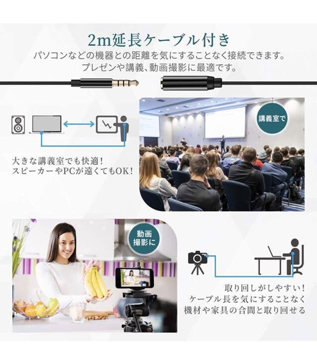 【様々な場面に対応】スマートフォンなどに繋げるだけで、セッティングはOK。初心者でも簡単に操作することできます。録音だけではなく、WEB会議、Youtube生放送、オンライン飲み会、ビデオ撮影、Tiktok、カラオケ、大食い動画、楽器など様々な用途で使用できますます。付属の2m延長ケーブルで適用範囲と距離がもっと遠くになって、コストパフォーマンスがより高いです。