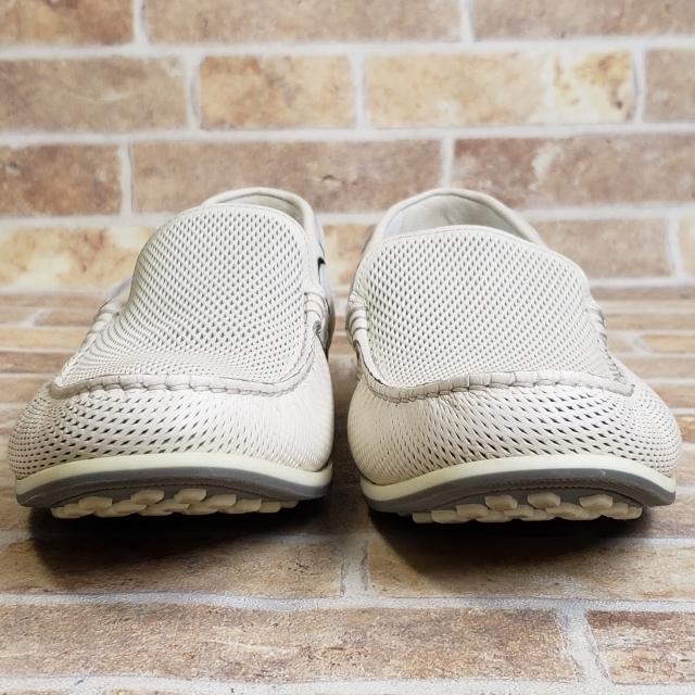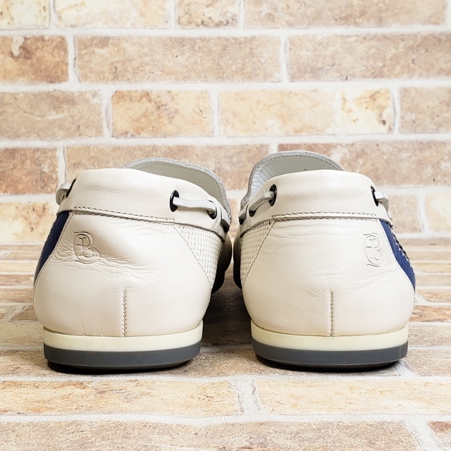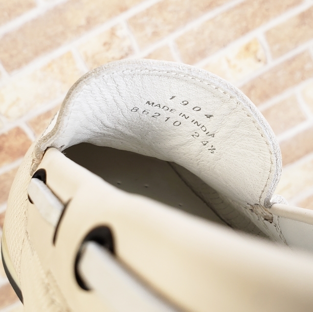 | 商品説明 | ・かかとのロゴ刻印とブルーとブラックのラインデザインがアクセントになった パンチングレザー スリッポン シューズ です。 内側にレザーが貼られているので透けはないです。 ・素材 レザー(本革) ・カラー アイボリー ブルー ブラック(画像参照) ・付属品 なし ・サイズ 24 1/2 アウトソール最大幅 約9.5cm アストソール最長幅 約29.0cm ヒール 約1.5cm ・商品コンディション 両足履き口のレザー紐に薄いスレ汚れがます。(画像参照) 両足かかとに軽く上からつぶしたような型崩れがあります。(画像参照) その他軽い着用感はありますが、目立ったダメージのないまだまだご愛用いただけるコンディションです。(画像参照) ※個人保管商品ですので、店舗コンディションをお求めの方はご入札をお控えください。ご理解の上ご入札お願いいたします。 A1398 |