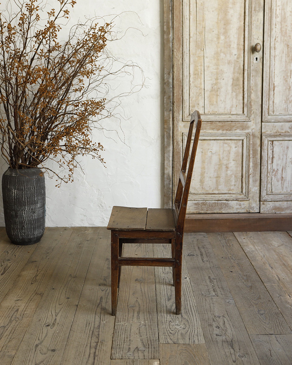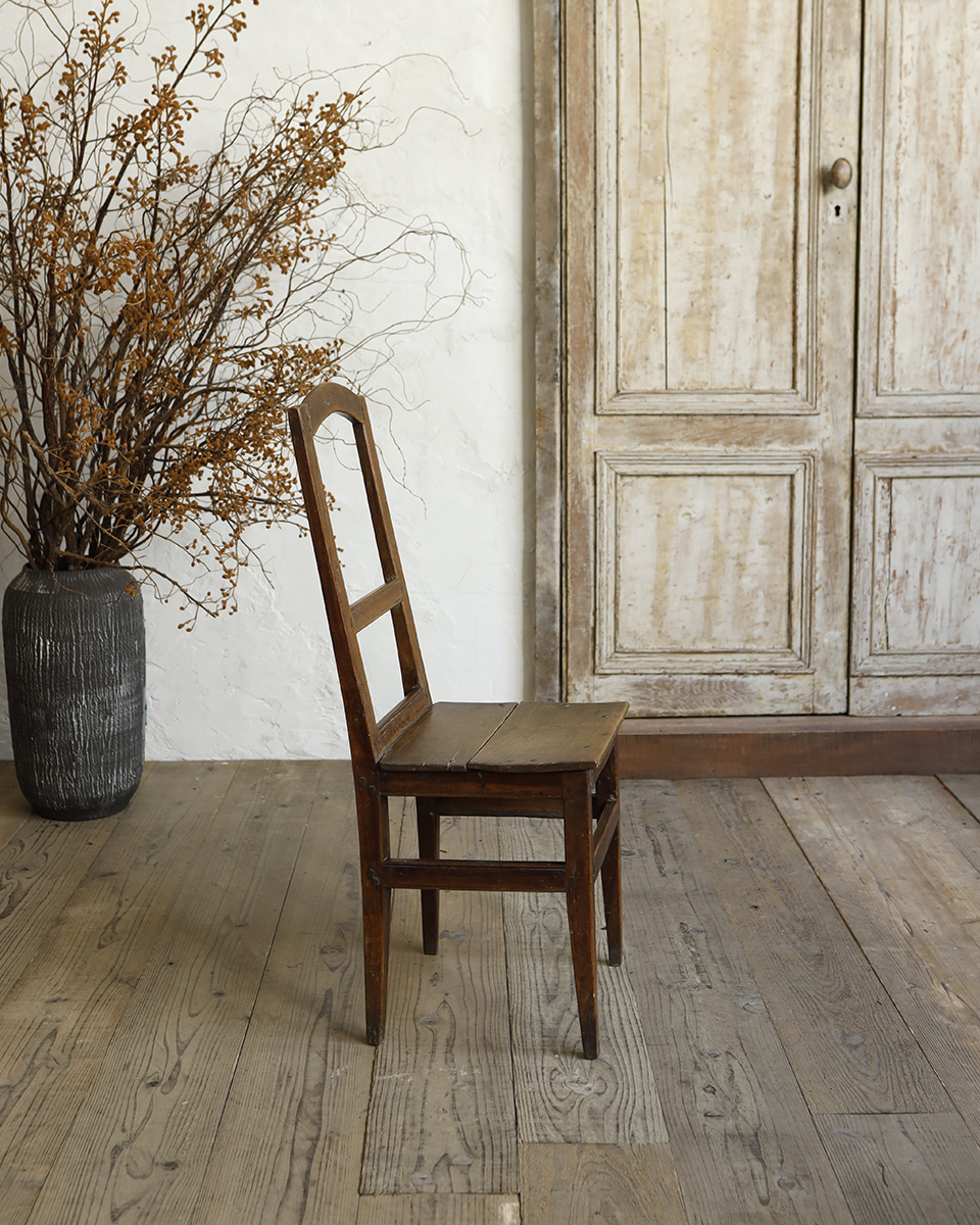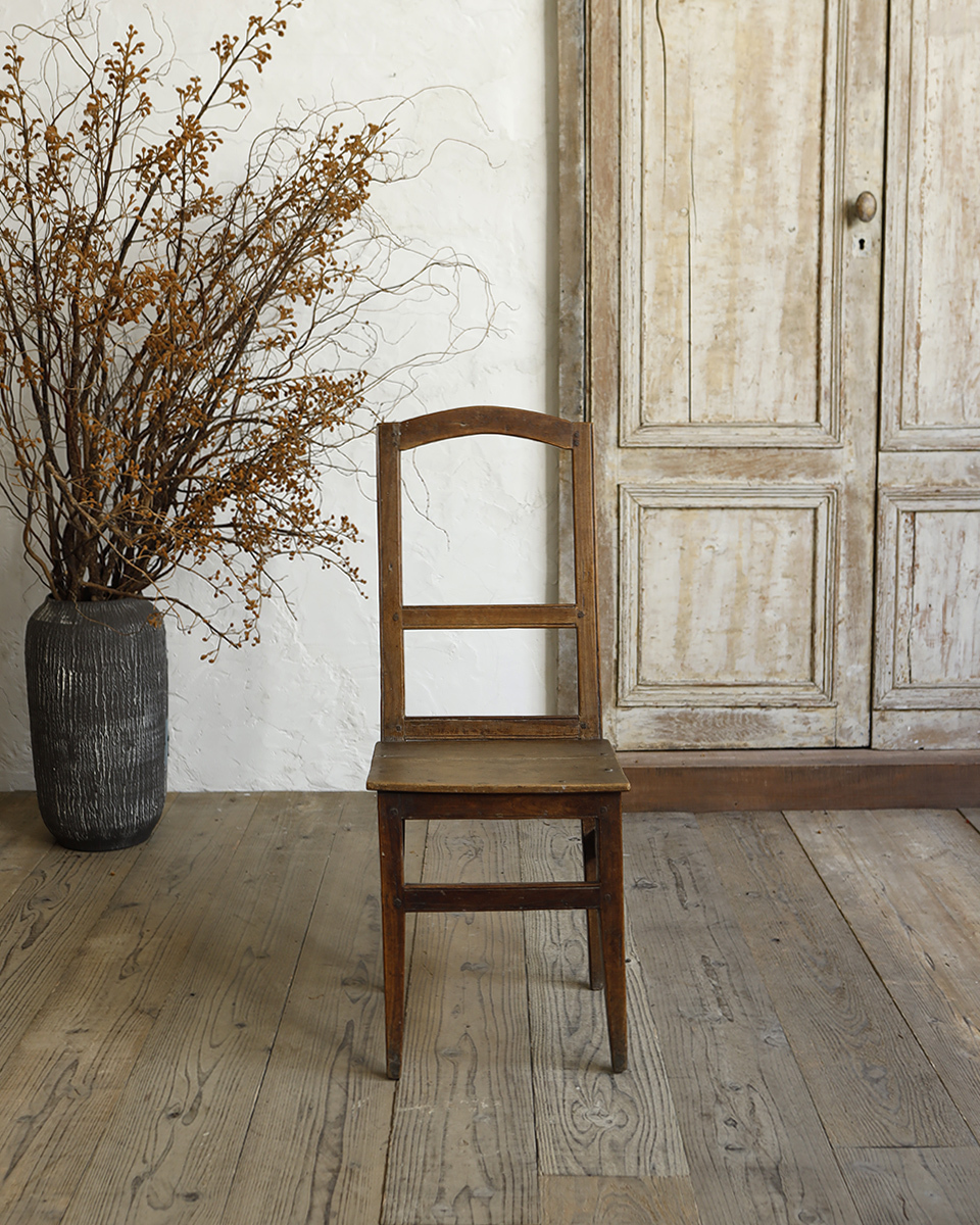 From : France フランスより届いたシンプルなデザインが愛らしいウッドチェア。 こちらは1840年代頃のチェアで、長い時を重ねて少しずつ現れたアンティークならではの趣深い木の風合いを纏ったひと品。アンティーク特有の存在感を漂わせながらも圧迫感を感じさせないスリムなデザインなので、玄関先やキッチンなどの窮屈なスペースにもレイアウトいただけます。 またレトロな雰囲気も感じされ、和やモダンなインテリアにも相性が良く、置くだけで存在感があり、西洋アンティークのエッセンスを取り入れた空間を演出します。 とても古いものなので、所々に経年劣化によるダメージなどがございます。風合いとしてお楽しみくださいませ。 商品はアンティーク品のため、お写真では伝わり難い色褪せや小傷、削れや汚れなどがございます。 追加のお写真をご希望の方はお気軽にお問合せくださいませ。 商品はメンテナンスを施してからの発送となります。 メンテナンス時にお写真にはない修復跡が残る可能性もございますので、予めご了承くださいませ。またお届けまでに7日間ほどお時間をいただく場合がございます。お急ぎの方はお気軽にご相談くださいませ。 |