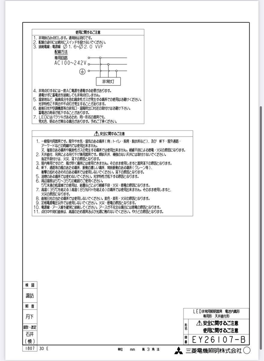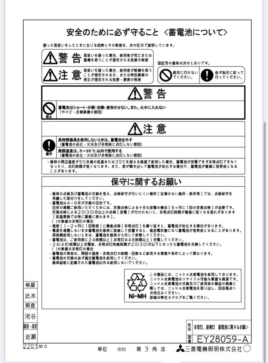 三菱電機 EL-CB20111B 1台 LED非常用照明器具 低天井用(~3m)直付形小型タイプ      製造番号1Y02と記載のみ