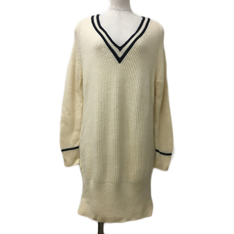 ドゥーズィエムクラス DEUXIEME CLASSE GENTLE WOMAN ワンピース ニット プルオーバー Vネック ミニ ウール チルデン 長袖 白 ホワイト