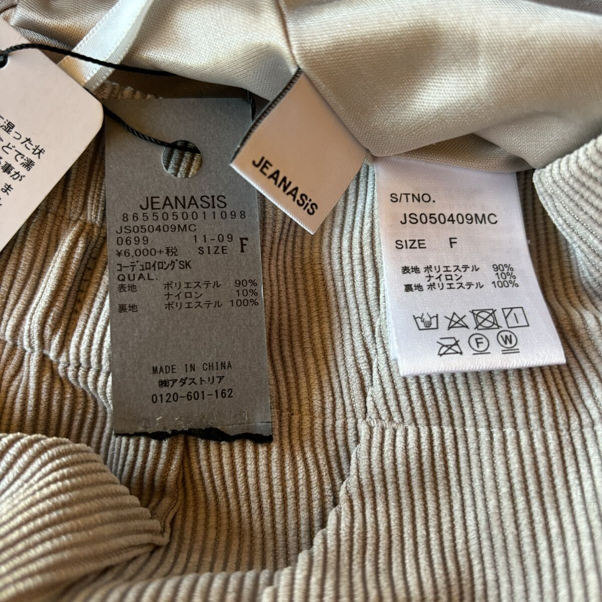 未使用 タグ付き JEANASIS タイトロングスカート タイト ロング スカート グレージュ ポケット付き ウエストゴム 2984