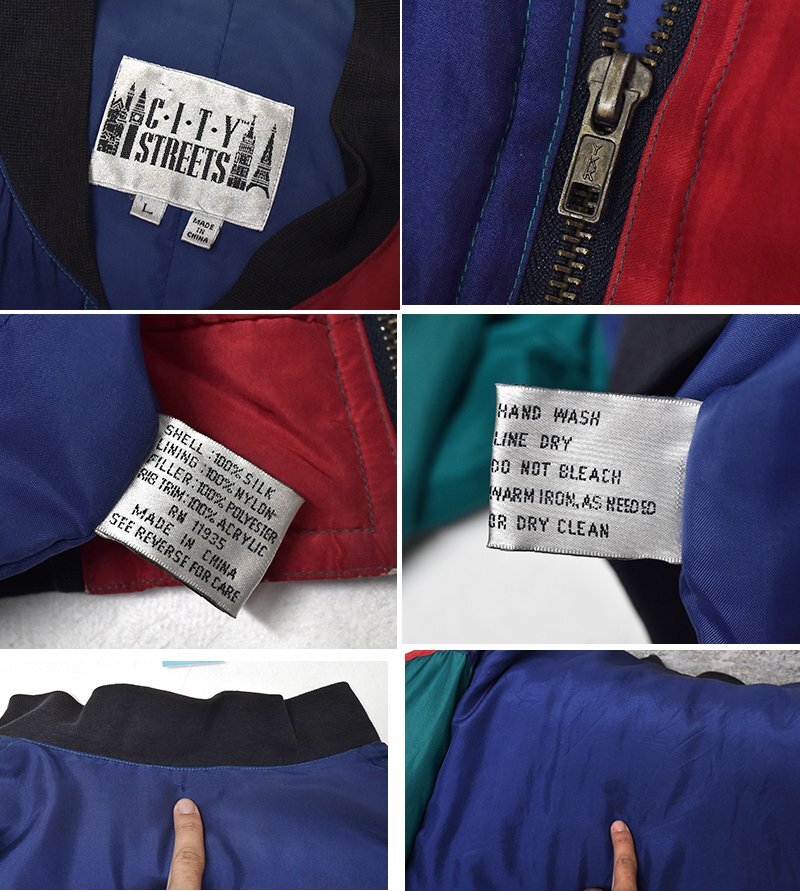 CITY STREET シティーストリート マルチカラー クレイジーパターン 中綿入り シルクブルゾン シルクジャケット サイズL CK0802-6-50-DC14