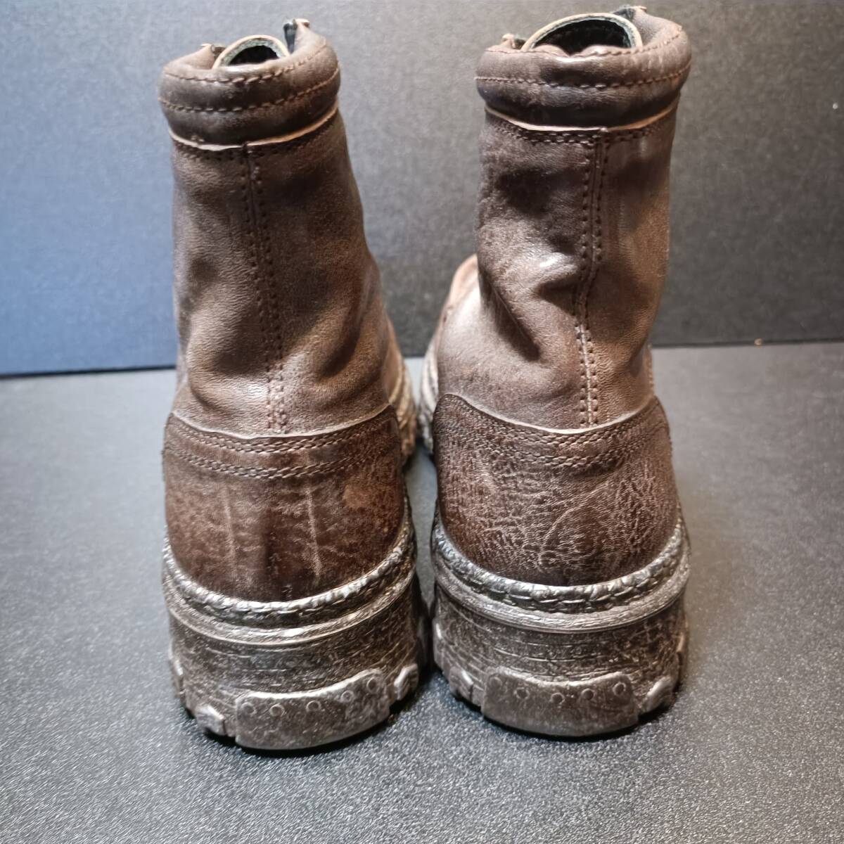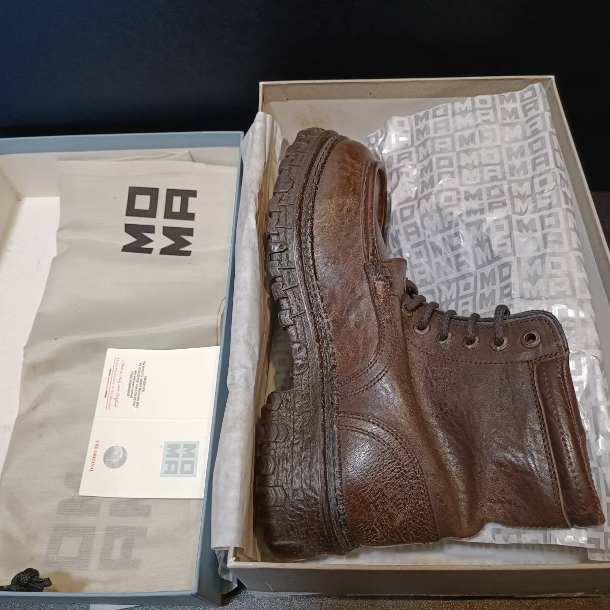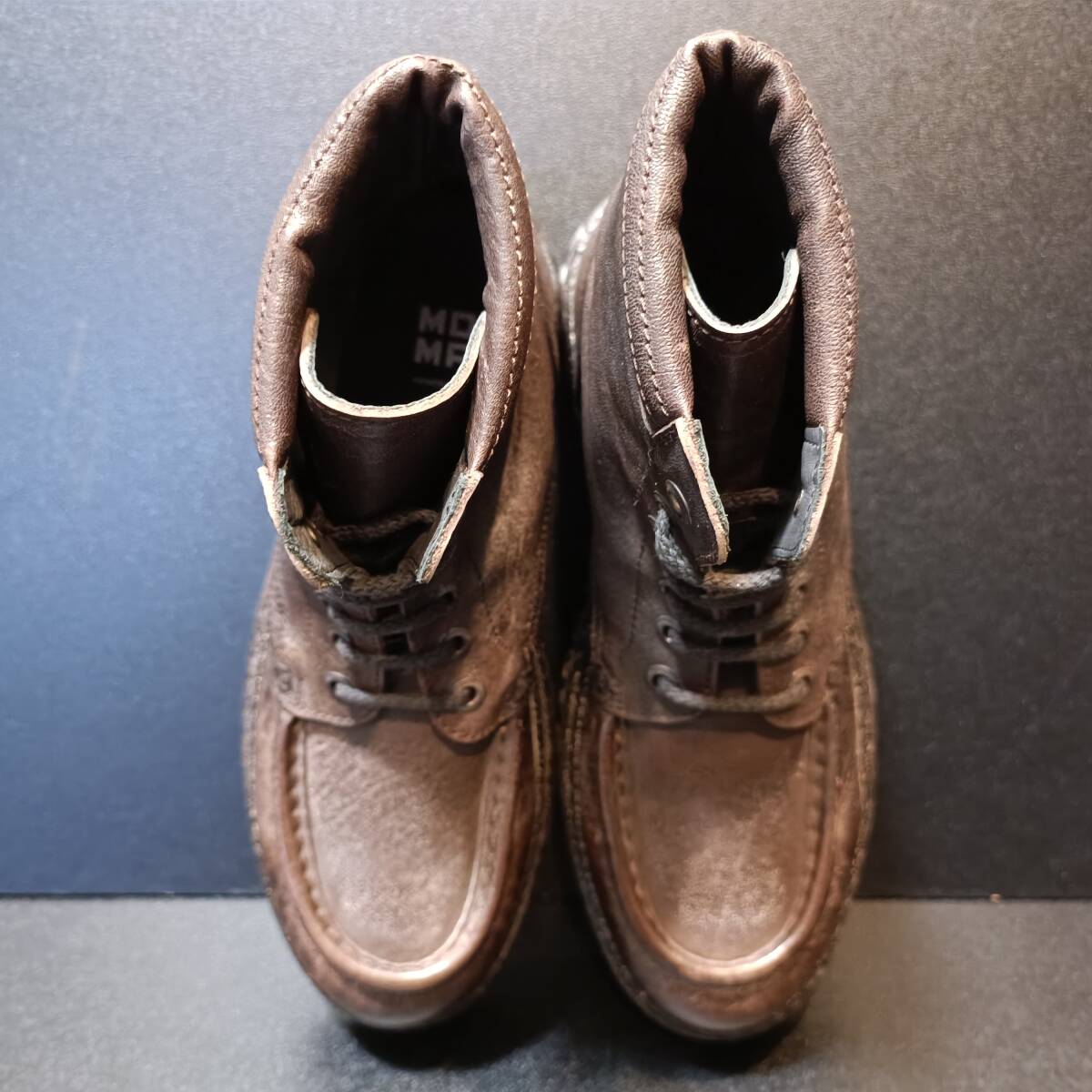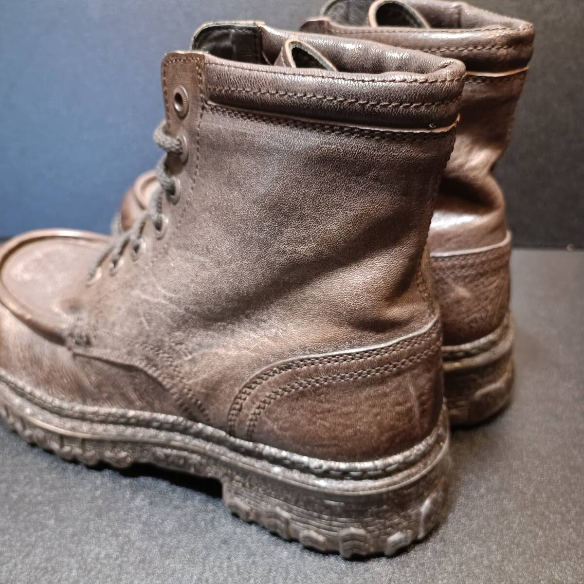 ■■■■■■■■お品物について■■■■■■■■ 「MOMA」のレザーシューズです。 MOMAはイタリア・マルケ州に居を構えるFragos社による1975年創立のシューズブランドです。アンティーク加工や鮮やかなペイントを施した無骨なレザーを用いたブーツを多数展開しており、イタリアの高級靴の中でもひときわ異彩を放つ製品を取り揃えるブランドです。 本品はモデル名「2CW228-MUS」。 使い込んだような風合いが特徴的な茶色のウォッシュドレザーを用いたワークブーツです。 ■■■■■■■■状態■■■■■■■■ 平行輸入品/未使用。本国での売れ残りデッドストック品です。 サイズ違い等のご用意は基本的にございません。すべて一点ものです。 外箱にダメージがある場合がございます。何卒ご了承ください。 ■■■■■■■■■サイズ■■■■■■■■■ EU42(日本サイズ26.5cm前後) アウトソール最大長:31.2cm アウトソール最大幅:11.8cm 靴底から履き口までの高さ:19.0cm ソール厚:2.3cm ヒール厚:4.2cm ■■■■■■■■素材表記■■■■■■■■ アッパー:レザー ライニング:レザー ソール:ラバー ■■■■■■■■原産国表記■■■■■■■■ MADE IN ITALY