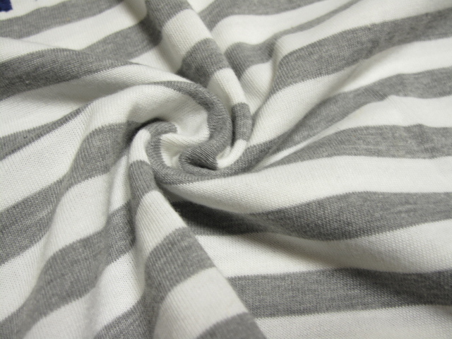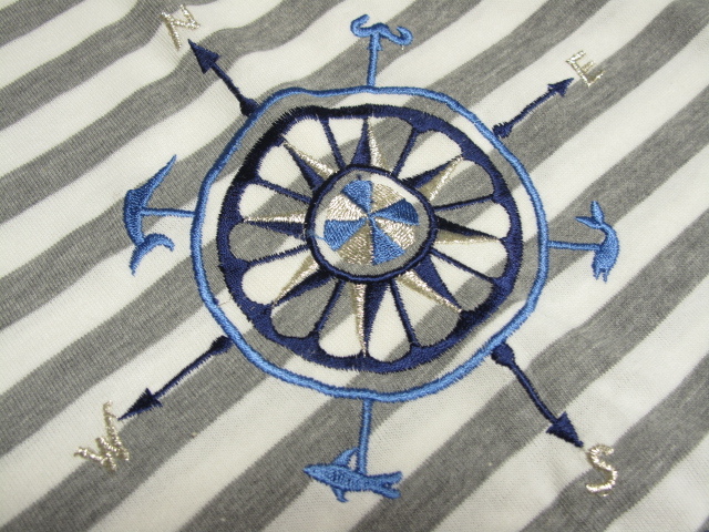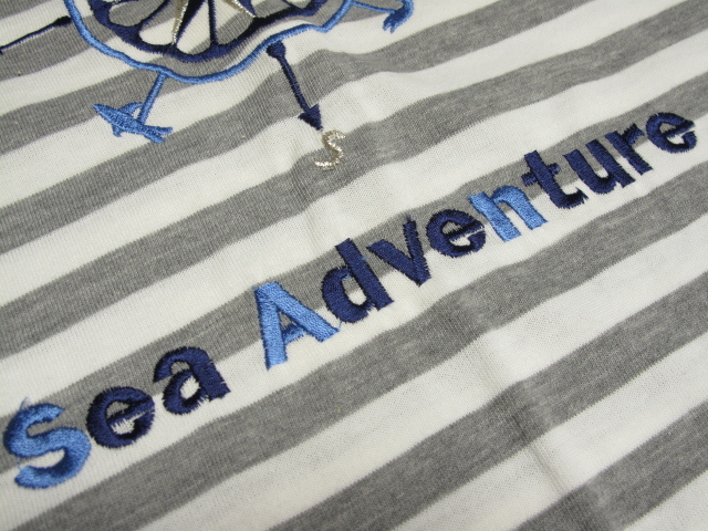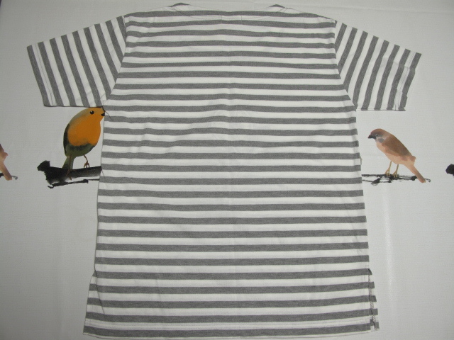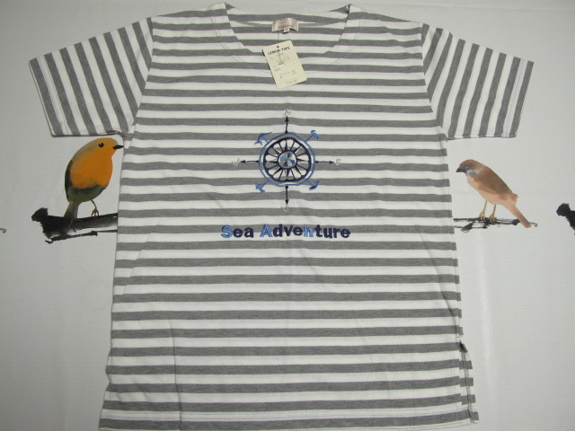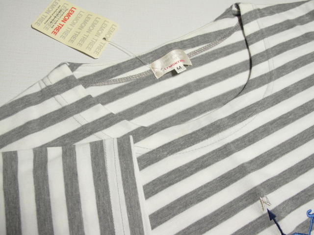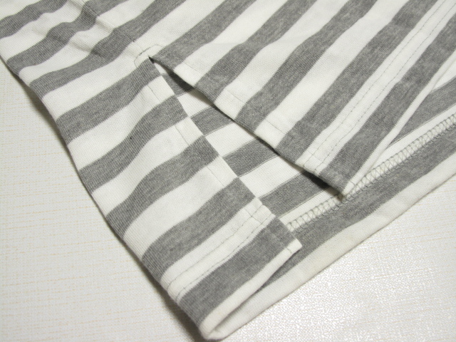 新品 カットソー Tシャツ 丸首 ボーダー 白 グレー 半袖 M サイドスリット マリン 刺繍 大きめ ゆったり