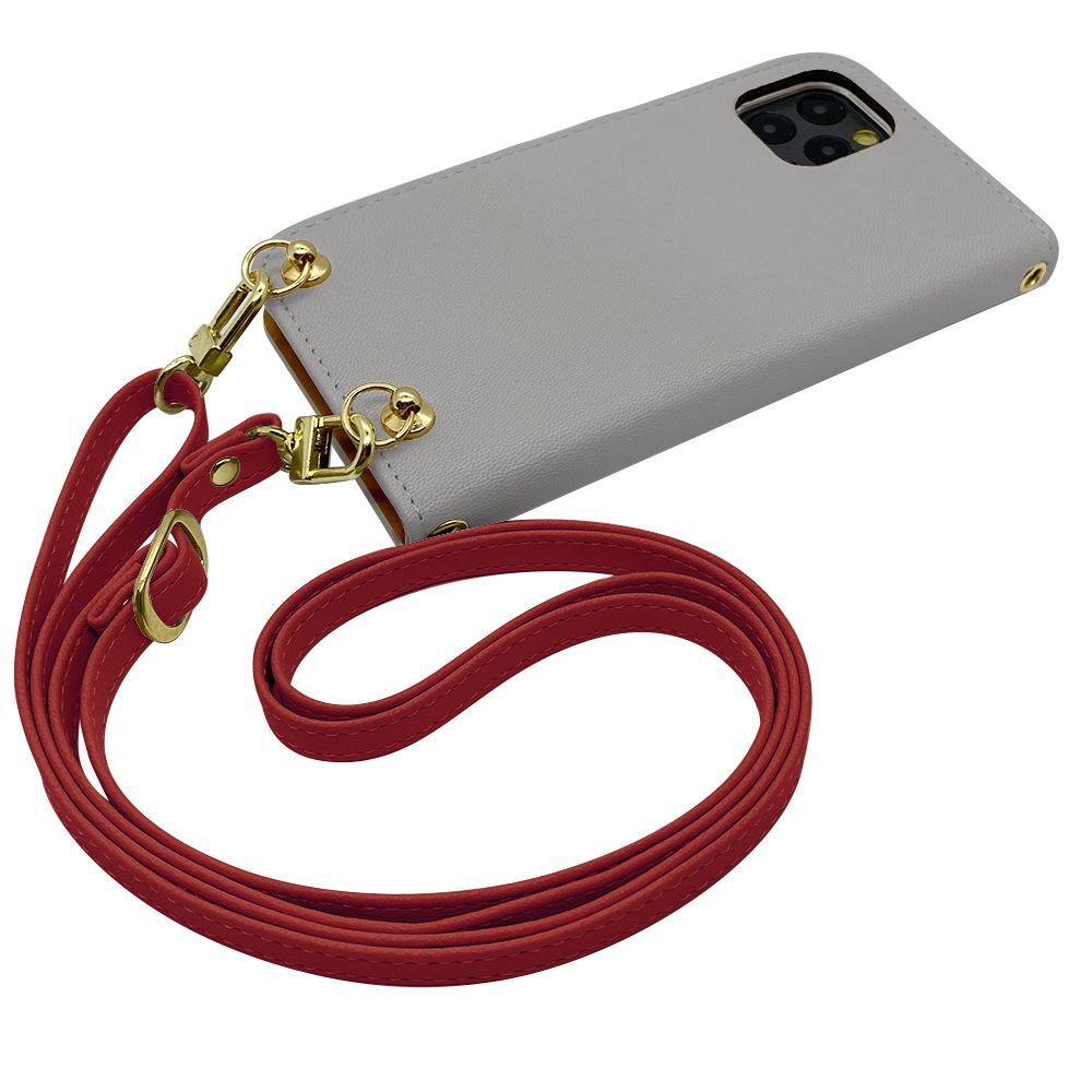 arrows Be4 F-41A アローズbe4 スマホショルダー(手帳ライトグレー×ストラップ:ボルドー)カバー 手帳 くすみカラー