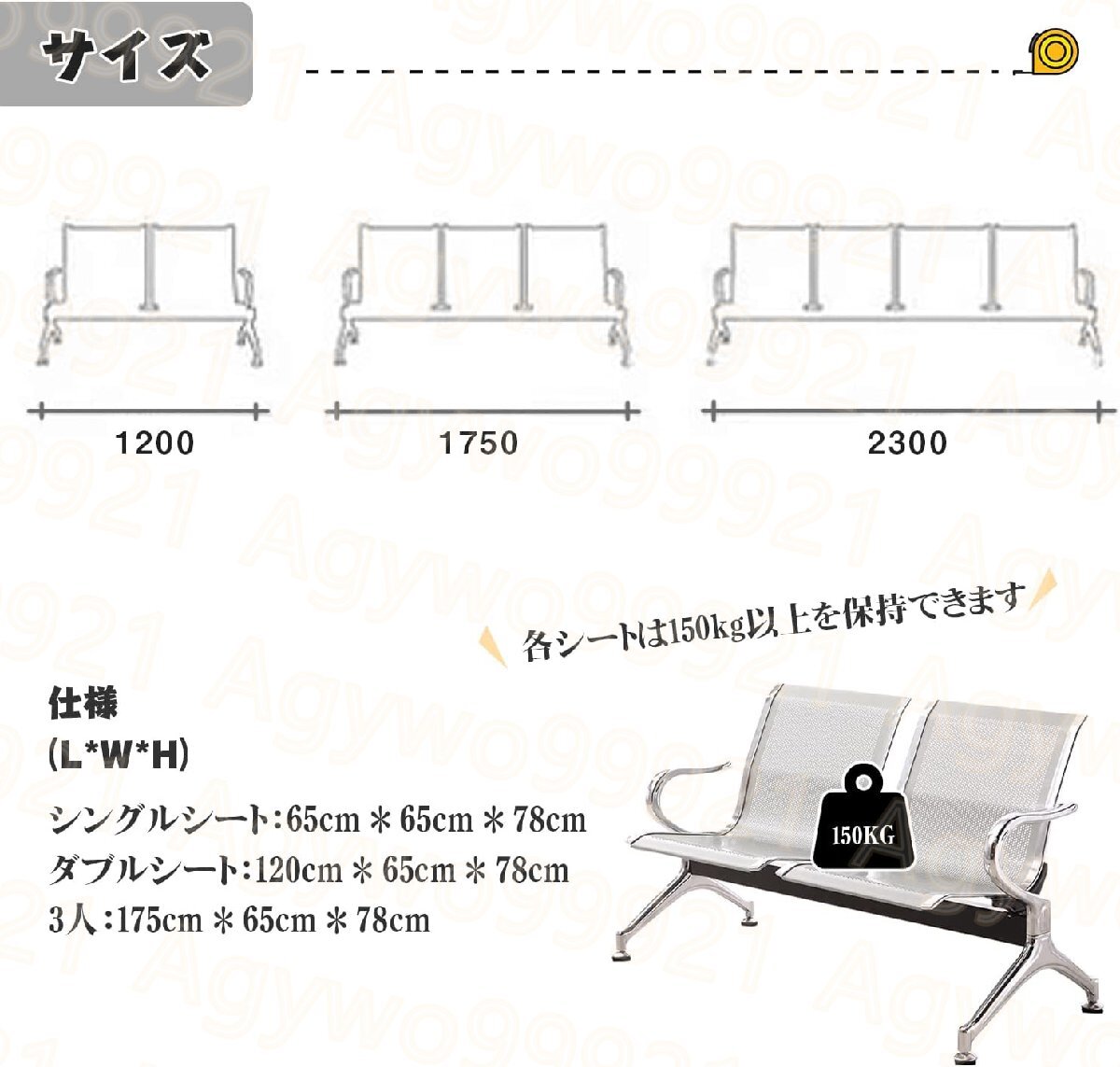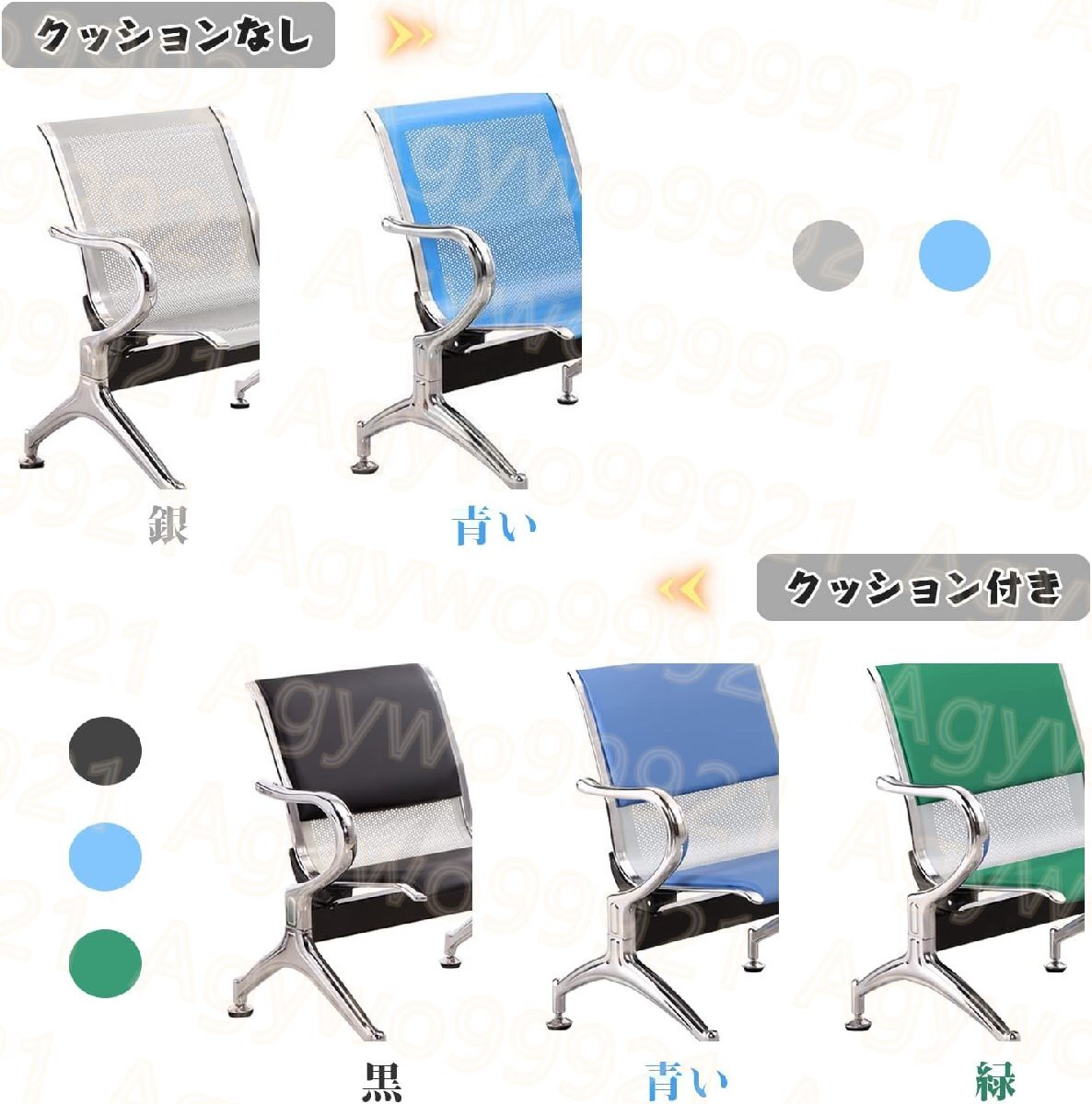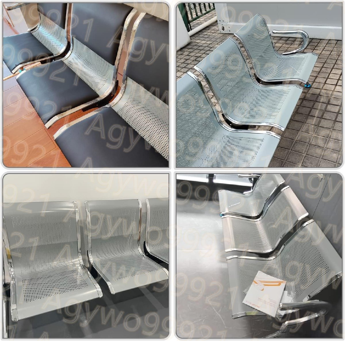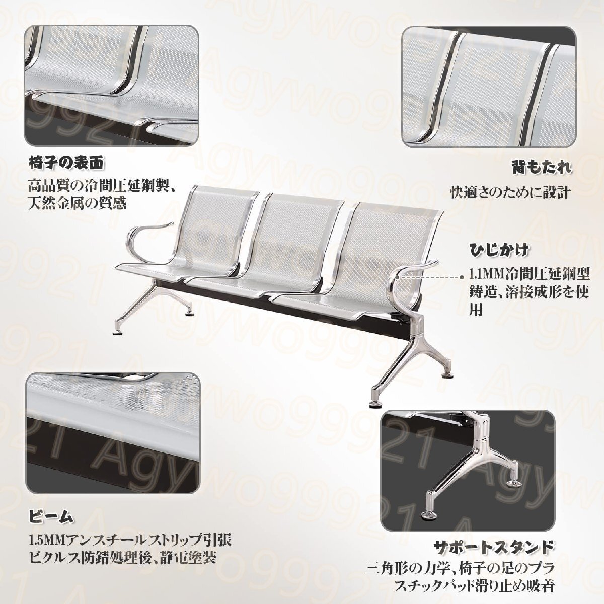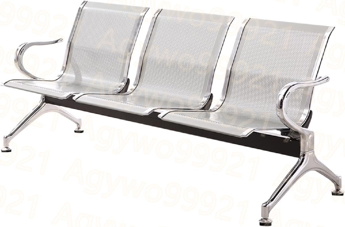 3つの椅子 レセプションチェア ゲストチェア 待合椅子 背もたれ付き アームレスト ステンレス鋼 防汚 175cm*65cm*78cm シルバーグレイ