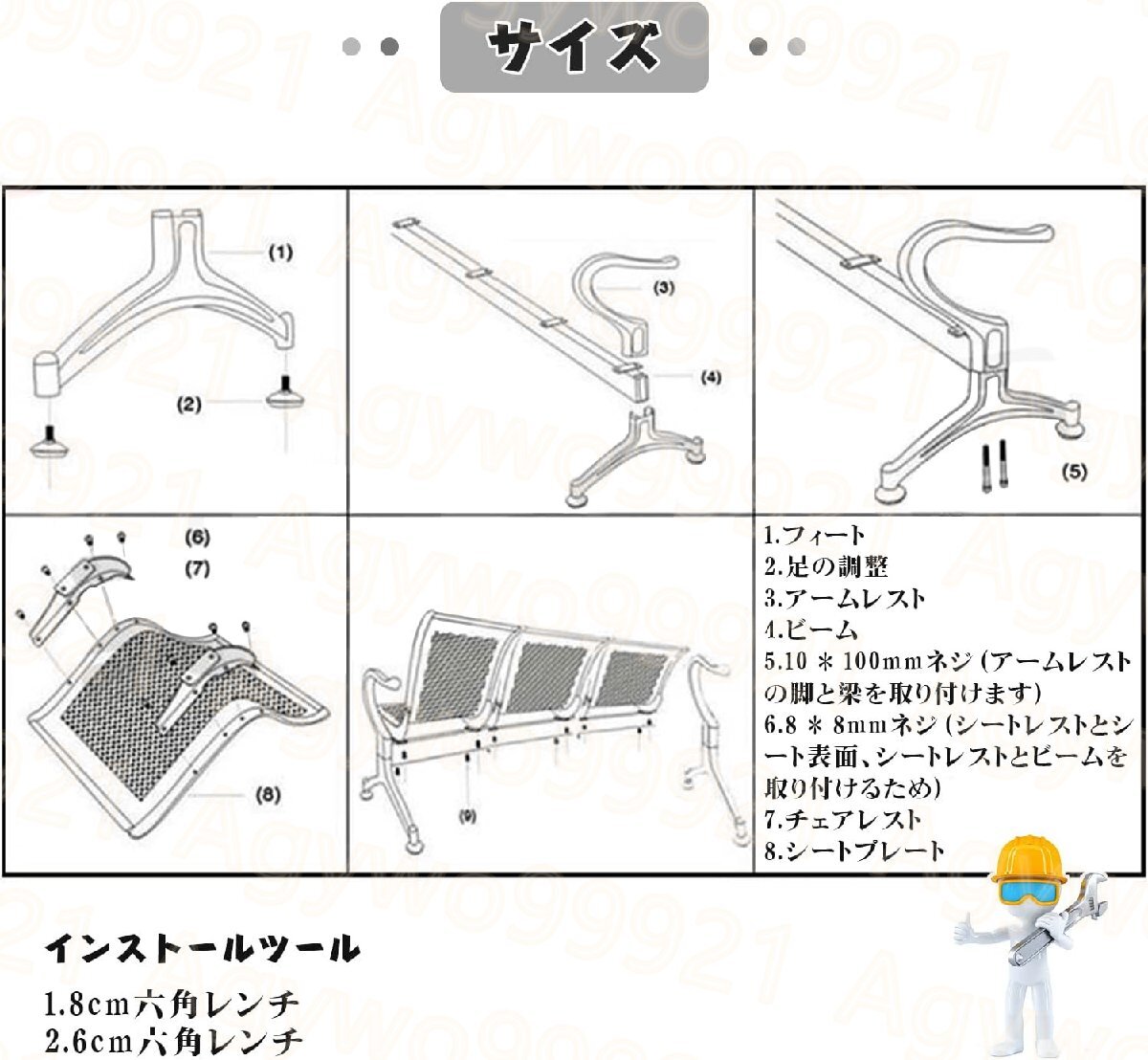 1-3席デザイン:ロビーチェアは、1-3席を備えています。3つのサイズは65cm*65cm * 78cm、120cm * 65cm * 78cm、175cm * 65cm*78cmです。フォームクッションと背もたれが付いています。 背もたれは人間工学的に110°設計されており、湾曲したシートと背もたれは、身体をよりリラックスさせることができます。疲れることなく長時間座ることができます。