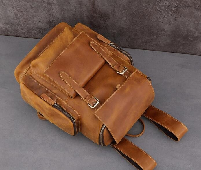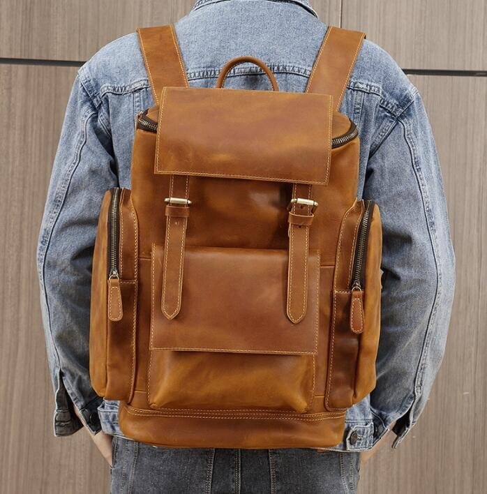 美品☆リュック メンズ 本革 牛革 スクエア PC収納 A4 レザー 多機能 大容量 リュックサック バックパック ビジネスリュック
