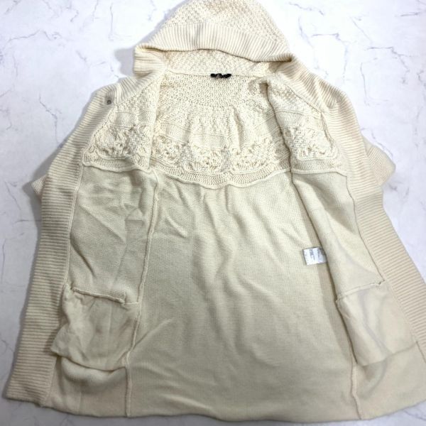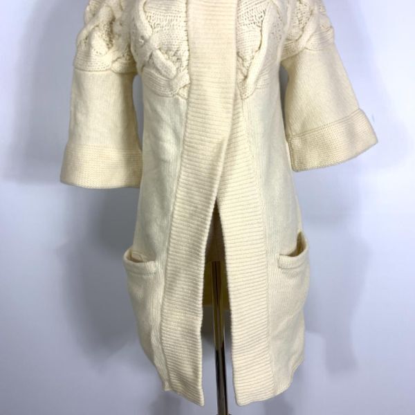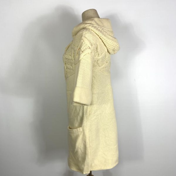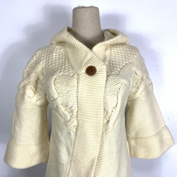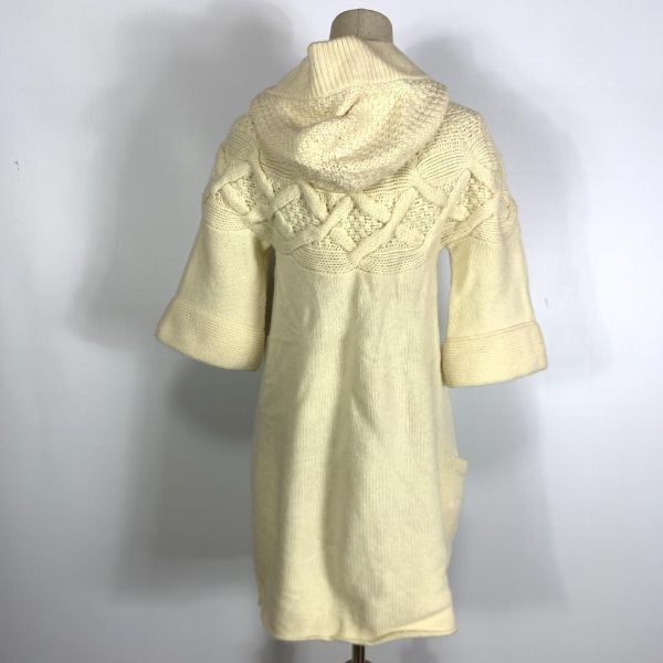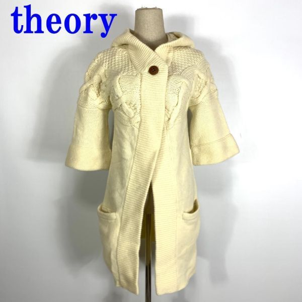 セオリー カシミヤ5分袖ロングケーブルニットカーディガンアイボリーtheory フード付き リブニット 裏地無 ドロップショルダー 2 C8683