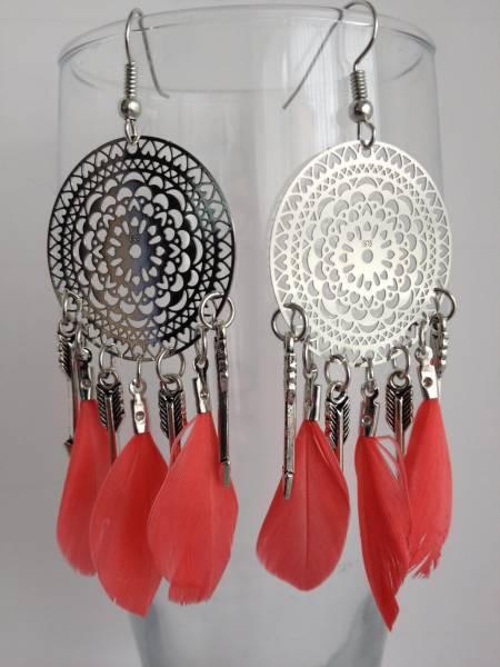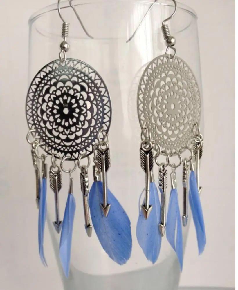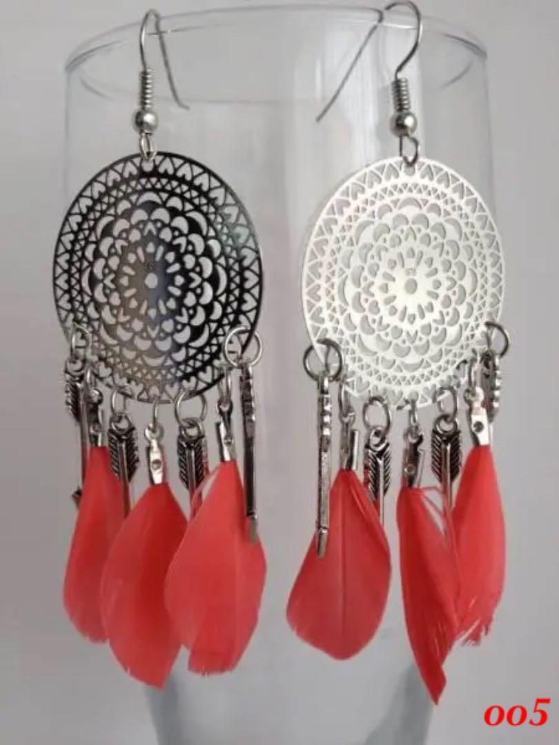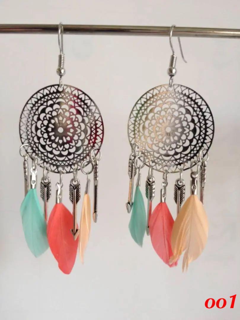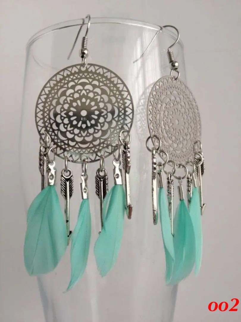 手工芸(フェザー&合金)エキゾチックピアス(5色選べる)【赤字在庫処分・送料無料】