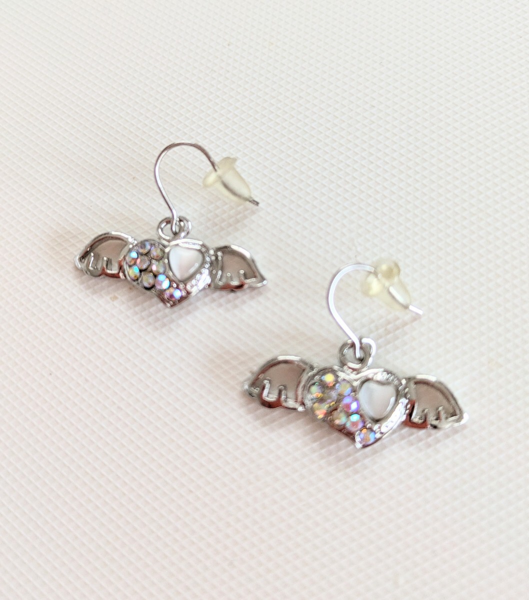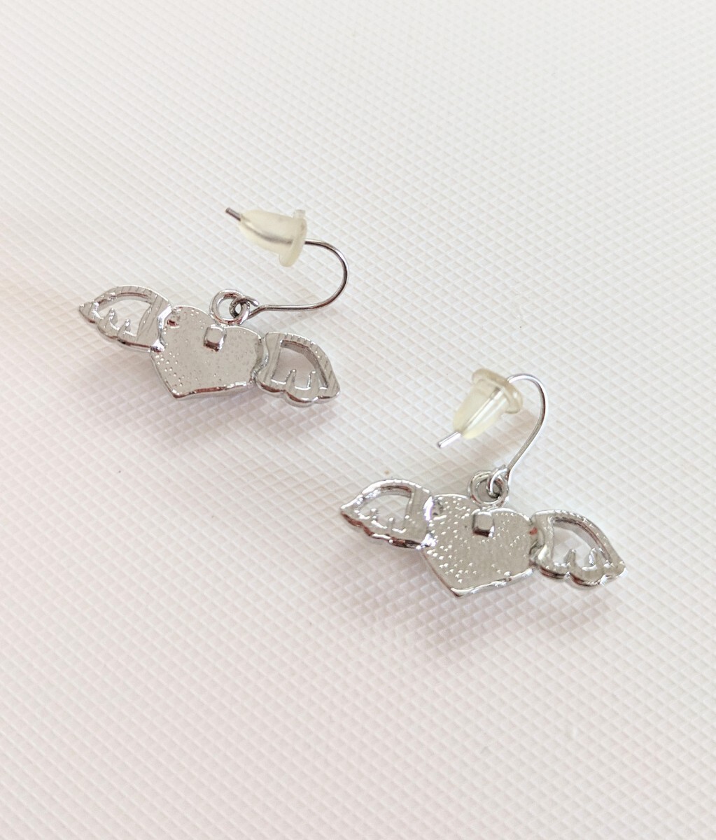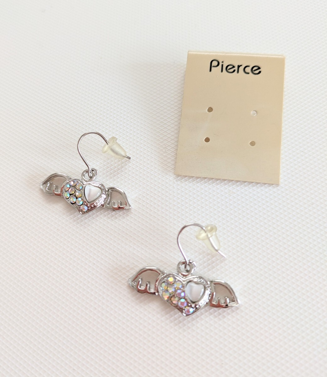 こちらは、新品未使用 ハート クリアーストーン エンジェル 天使の羽 シルバーカラー フックピアス になります♪