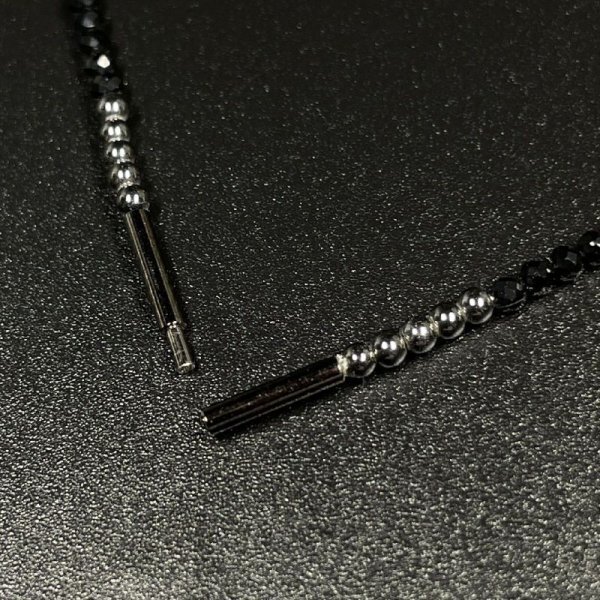 テラヘルツ(鉱石)とカットオニキス(パワーストーン)の組み合わせも然ることながら、ブラッククラスプ仕様にすることで外観も利便性もばっちりに仕上げました^^