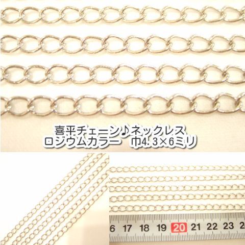 商品名 | 横浜最新 魅惑の喜平チェーン♪ロジウムカラー 巾4.3×6ミリ 5m メンズレディース |