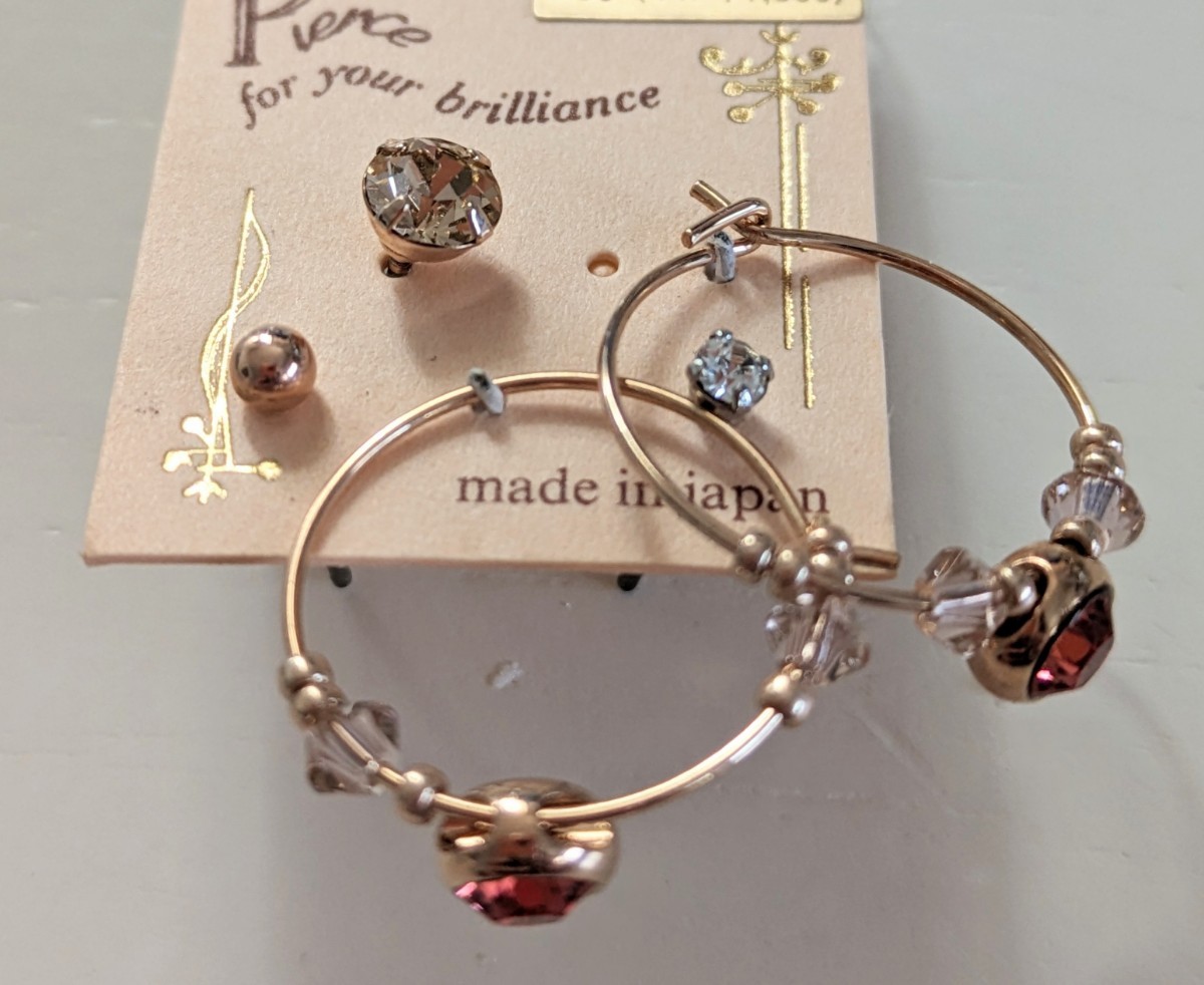 こちらは、新品未使用 レッド ピンク クリアーストーン ループピアス スタッドピアス になります♪