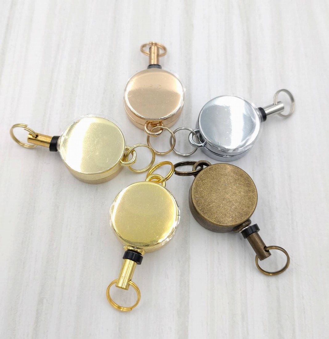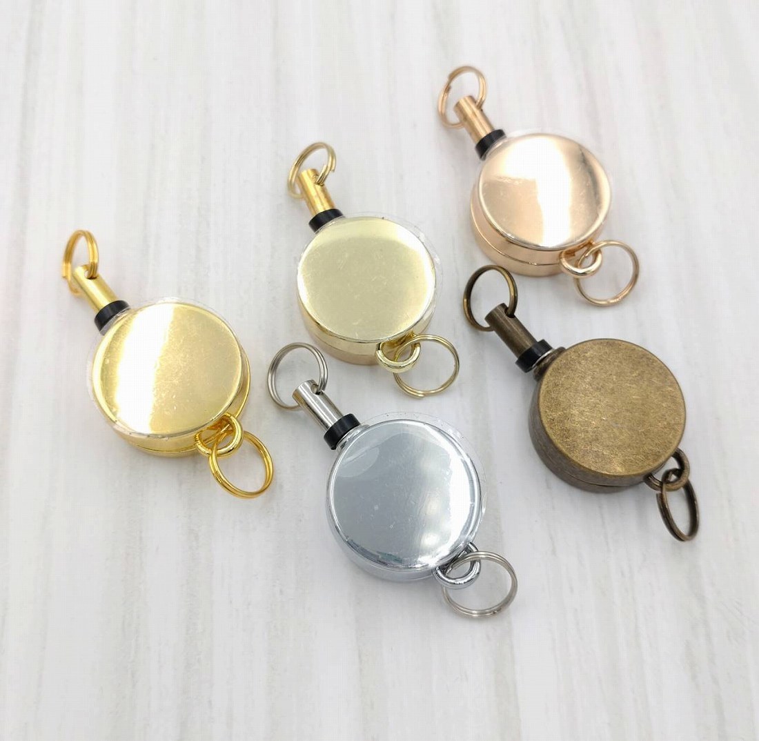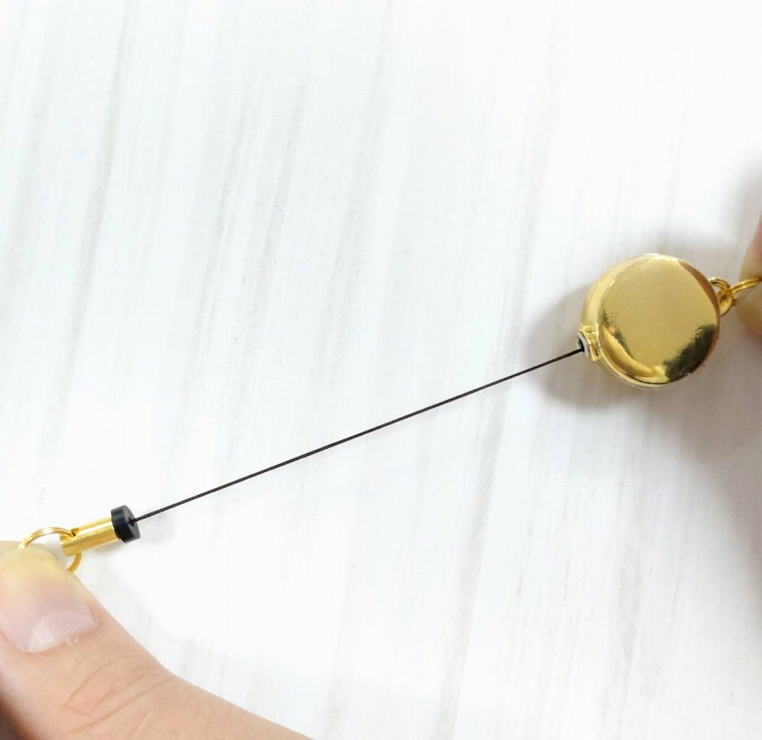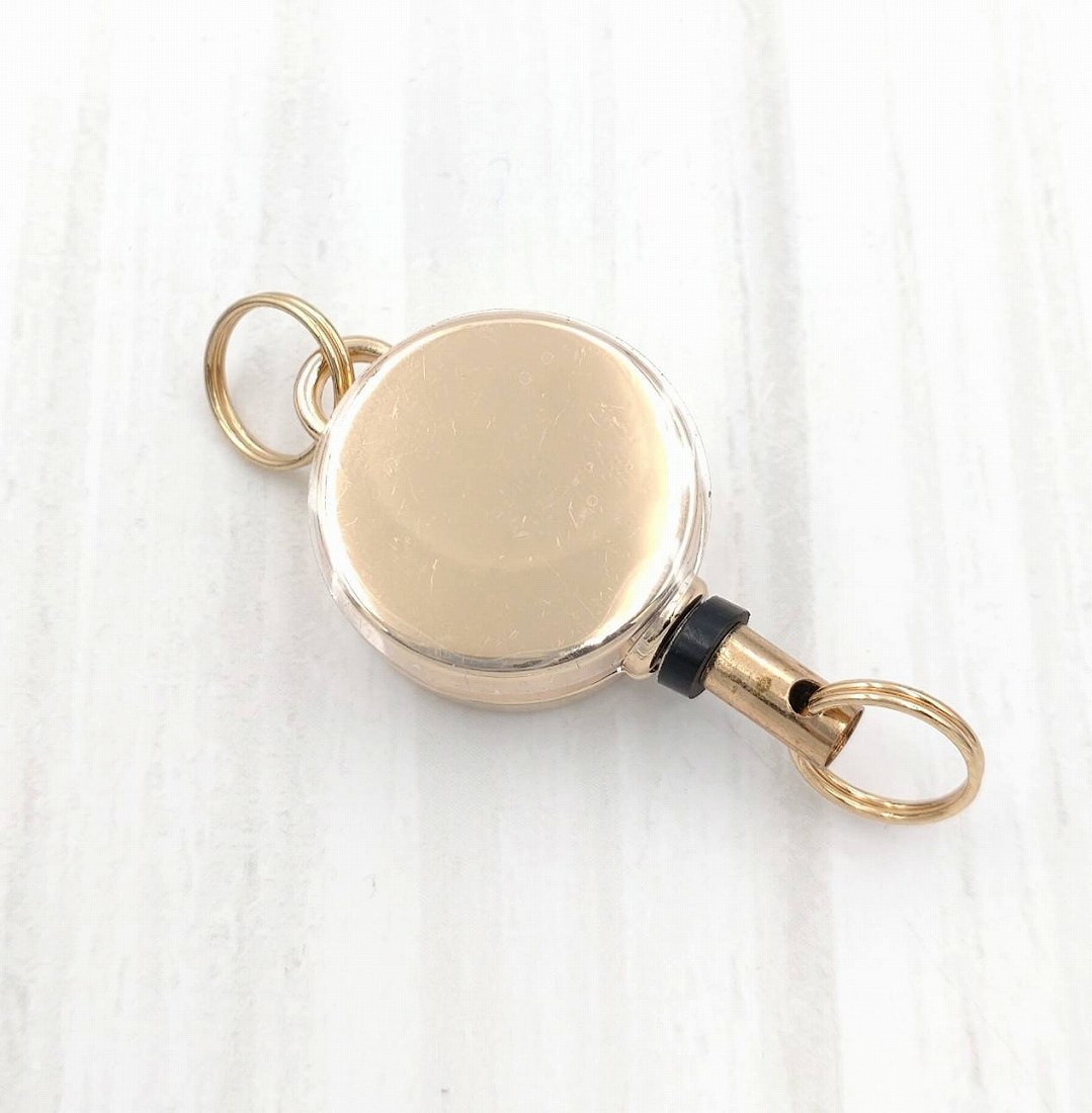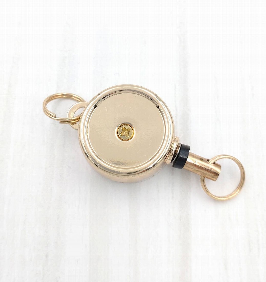 鞄やリュックサック、ベルトなどに付けて落下防止や紛失防止に活用いただけます。鍵やパスケース、財布などの紛失防止にご活用ください。ゴールドやシルバーなどの色を用意しております。お好みの色をお選びください。また上部は平になっていますので、お好きなものでデコレーションしてオリジナルアクセサリを作成することもできます。金属製のシンプルなデザインなので、お子様をはじめ、大人まで幅広くお使いいただけるデザインだと思います。プレゼントなどにもおすすめです。※巻き取りの力が強めですので、お使いの際はご注意ください。サイズ 紐巻き取り時:約5cm紐は約30cm伸ばすことができます。(個体差がございますので、多少前後することがございます)数量:1個検索用キーワード:ゴールド 金色 リールキーホルダー リールチェーン 巻き取り式キーホルダー 伸びる 伸縮 ハンドメイドパーツ レジン アレンジ デコレーション アクセサリー 手芸 ハンドメイド DIY 材料 素材 手芸用品 プレゼント 誕生日 プチギフト シンプル おしゃれ 可愛い