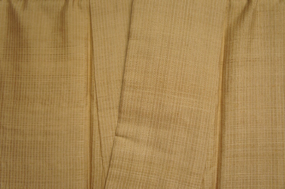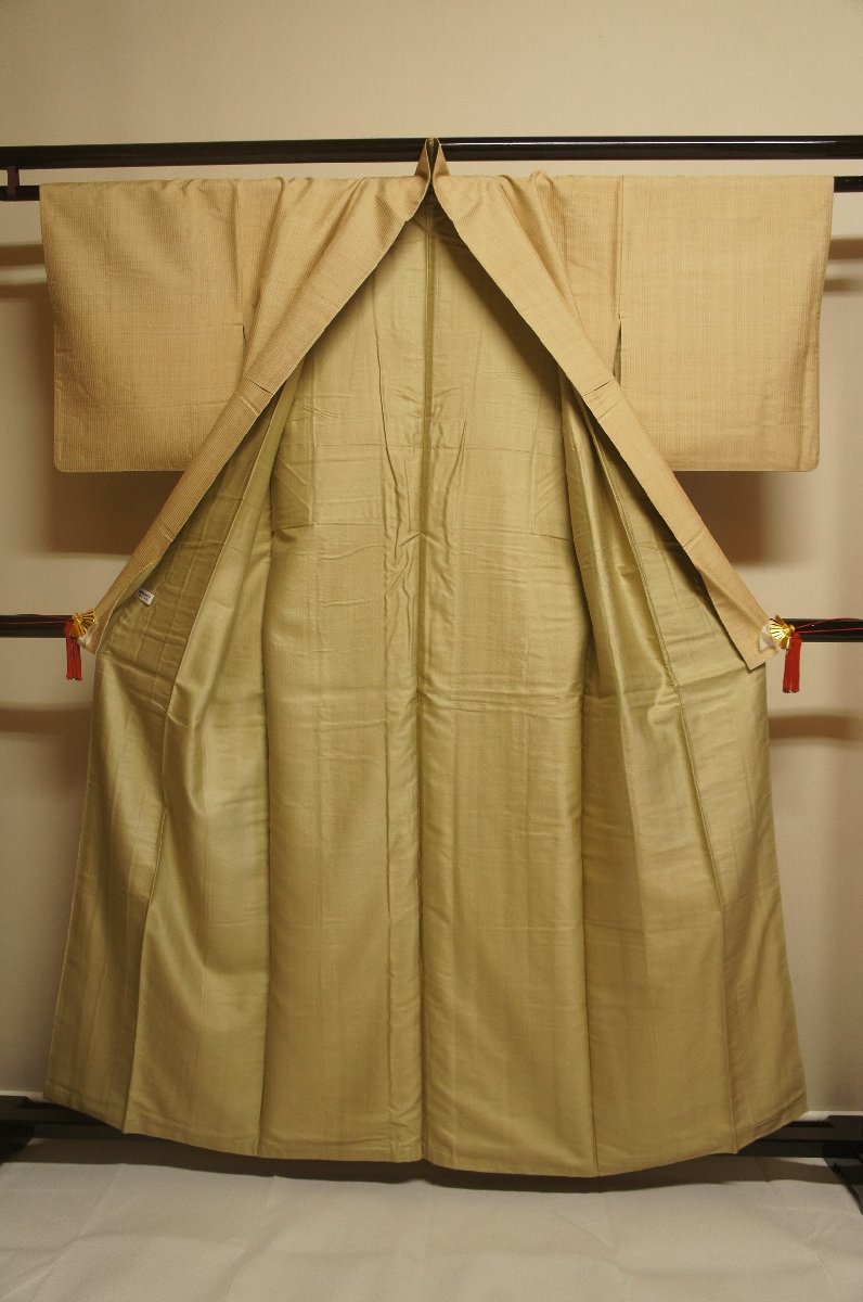 商品名特選『ゴールデンムガシルク』桑色白茶色地縞模様袷紬長着[K14859]