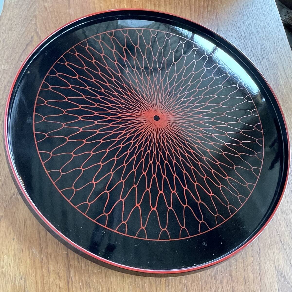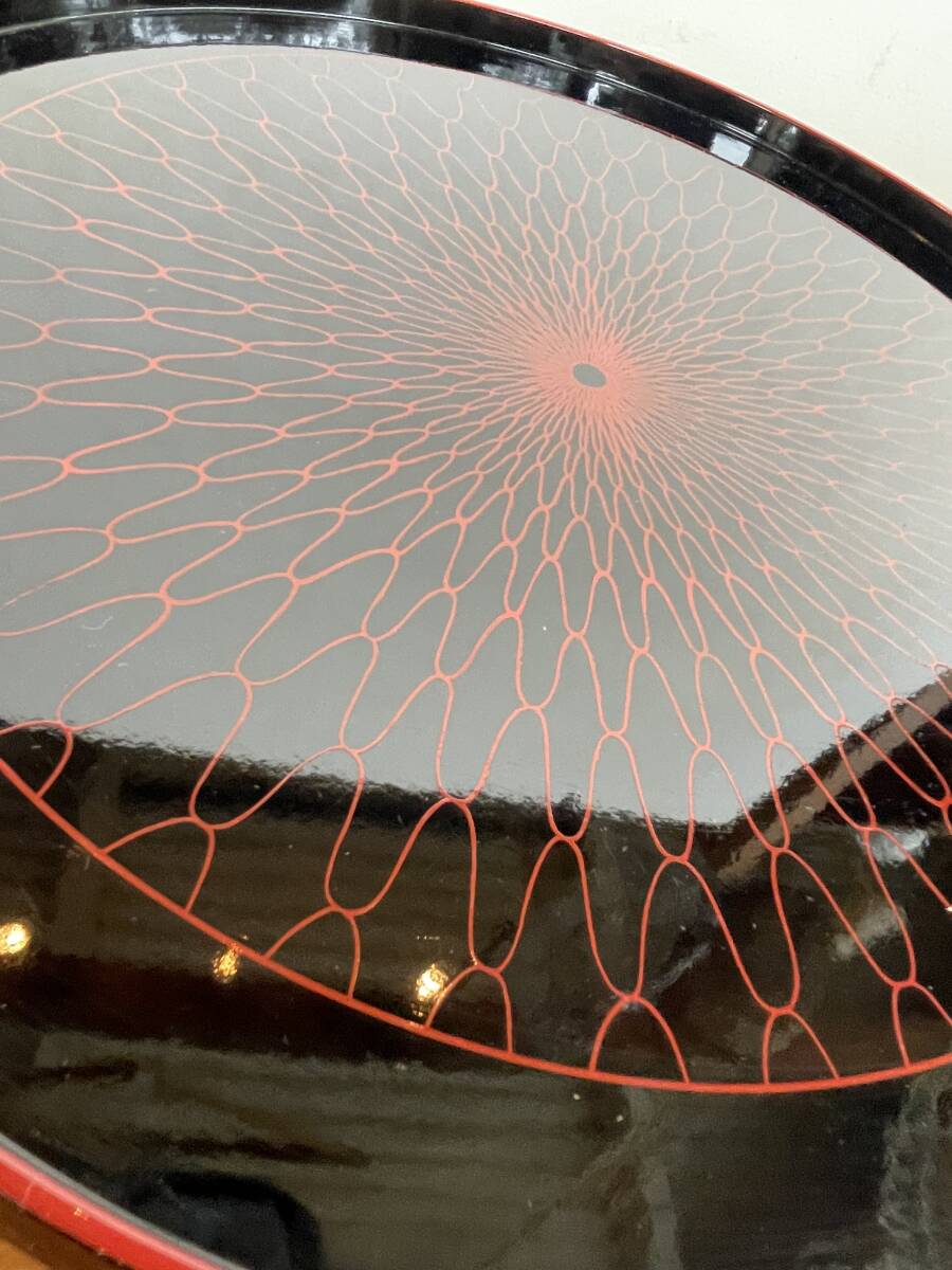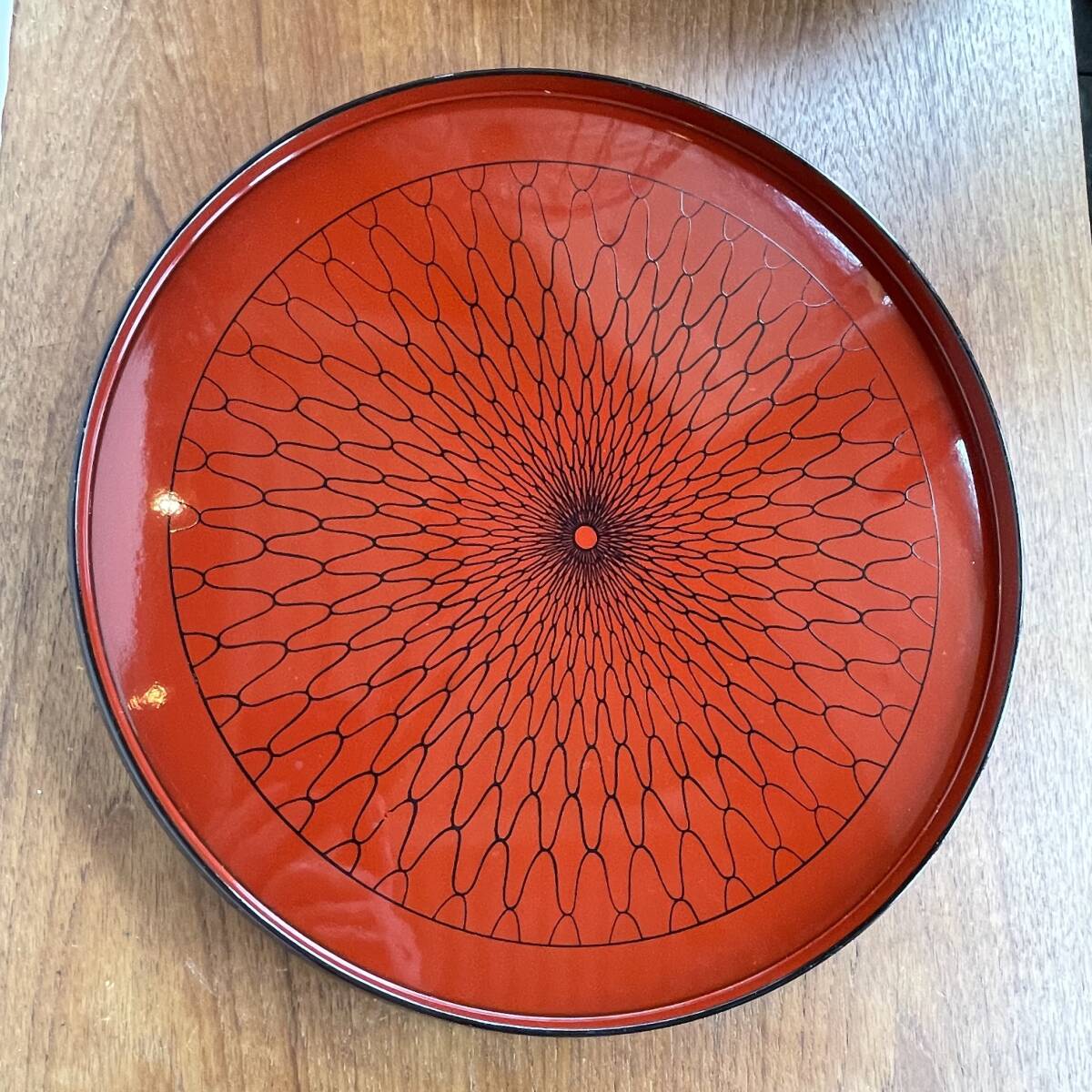 表・裏で色を使い分けられる 山中漆器の丸盆(お盆、トレー、トレイ、大皿) かなり大きめのサイズです。