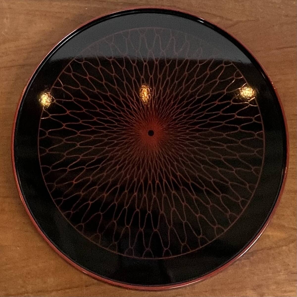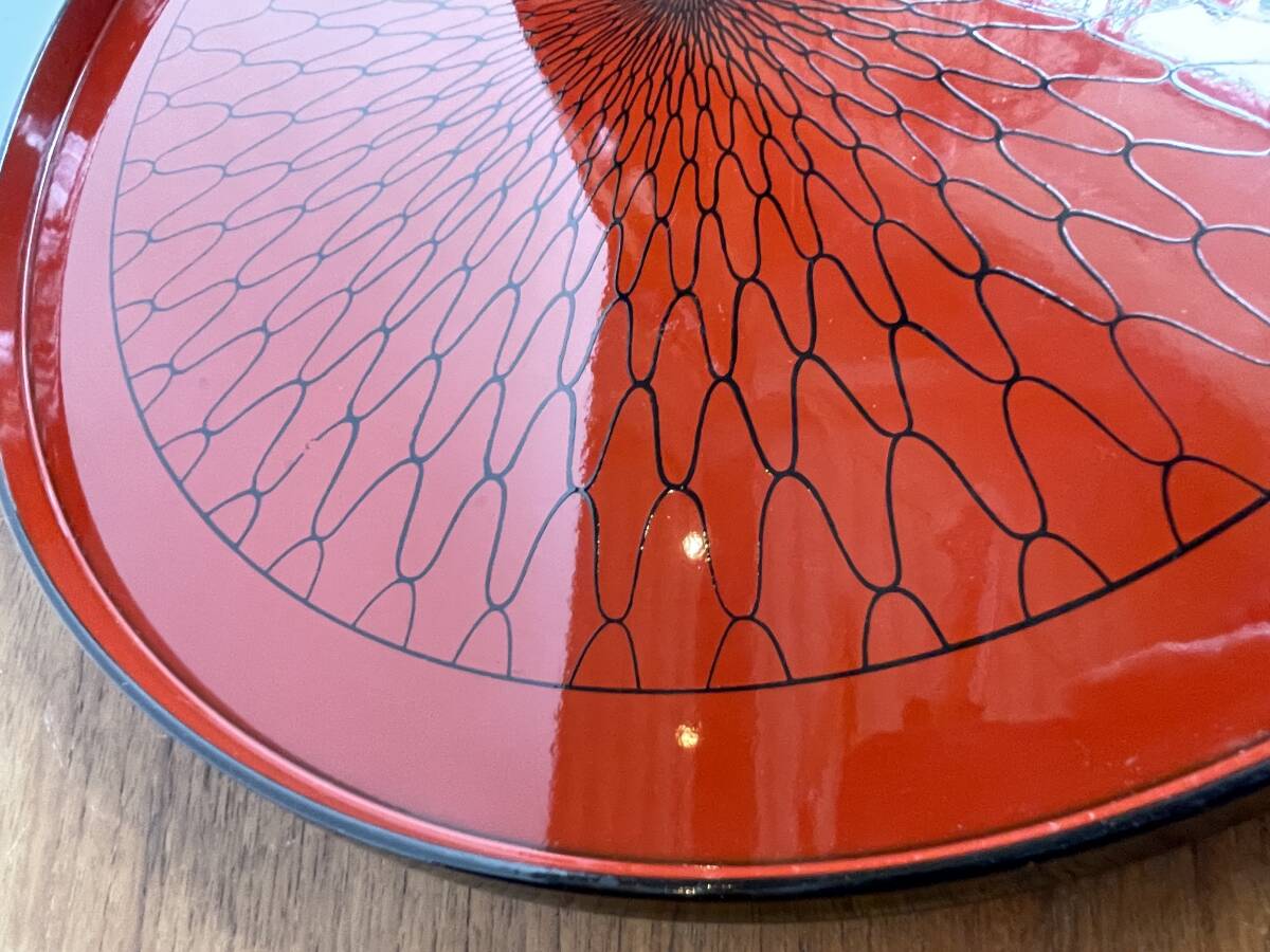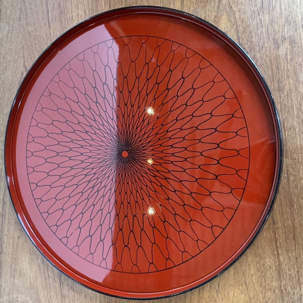 表・裏で色を使い分けられる 山中漆器の丸盆(お盆、トレー、トレイ、大皿) かなり大きめのサイズです。
