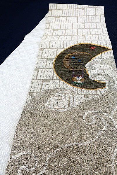 | 【送料無料】逸品 未使用品 袋帯 誉田屋源兵衛 月 ふくろう ホワイトシルバー 4m45cm フォーマル 訪問着 付け下げ 正絹 m-5654 |