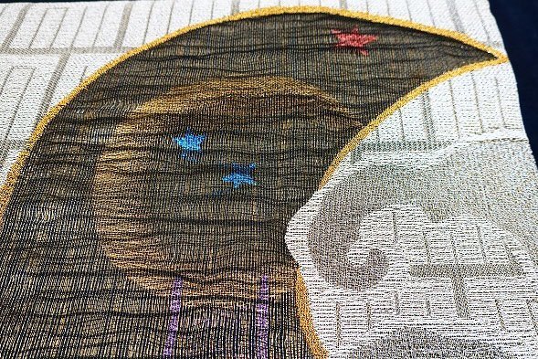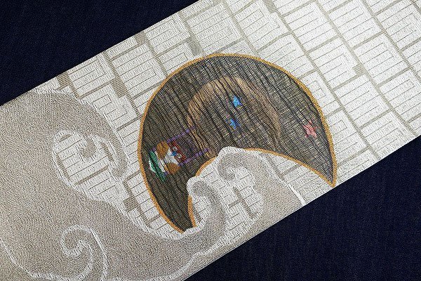 西陣 帯の名門、「誉田屋源兵衛」謹製、袋帯です。 シャンパンゴールドの絹地に、月にふくろうが織り込まれています。 品のある愛らしさとお洒落さを併せ持っています。 精緻で丁寧な仕事が施された逸品です。 未使用品です。 ※落款がないタイプですが、誉田屋謹製で間違いありません。 |