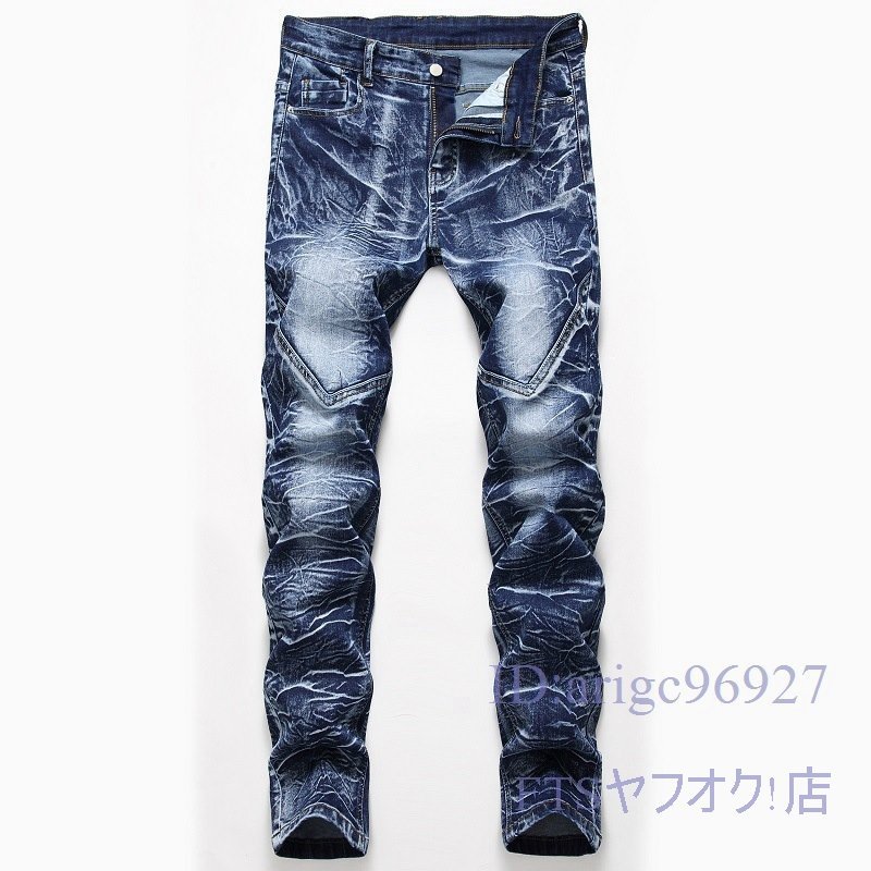 S813☆新品メンズ デニムパンツ ジーンズ ジーパン ロングパンツ スキニーパンツ ストレッチパン Gパン 大きいサイズ ブルー w32