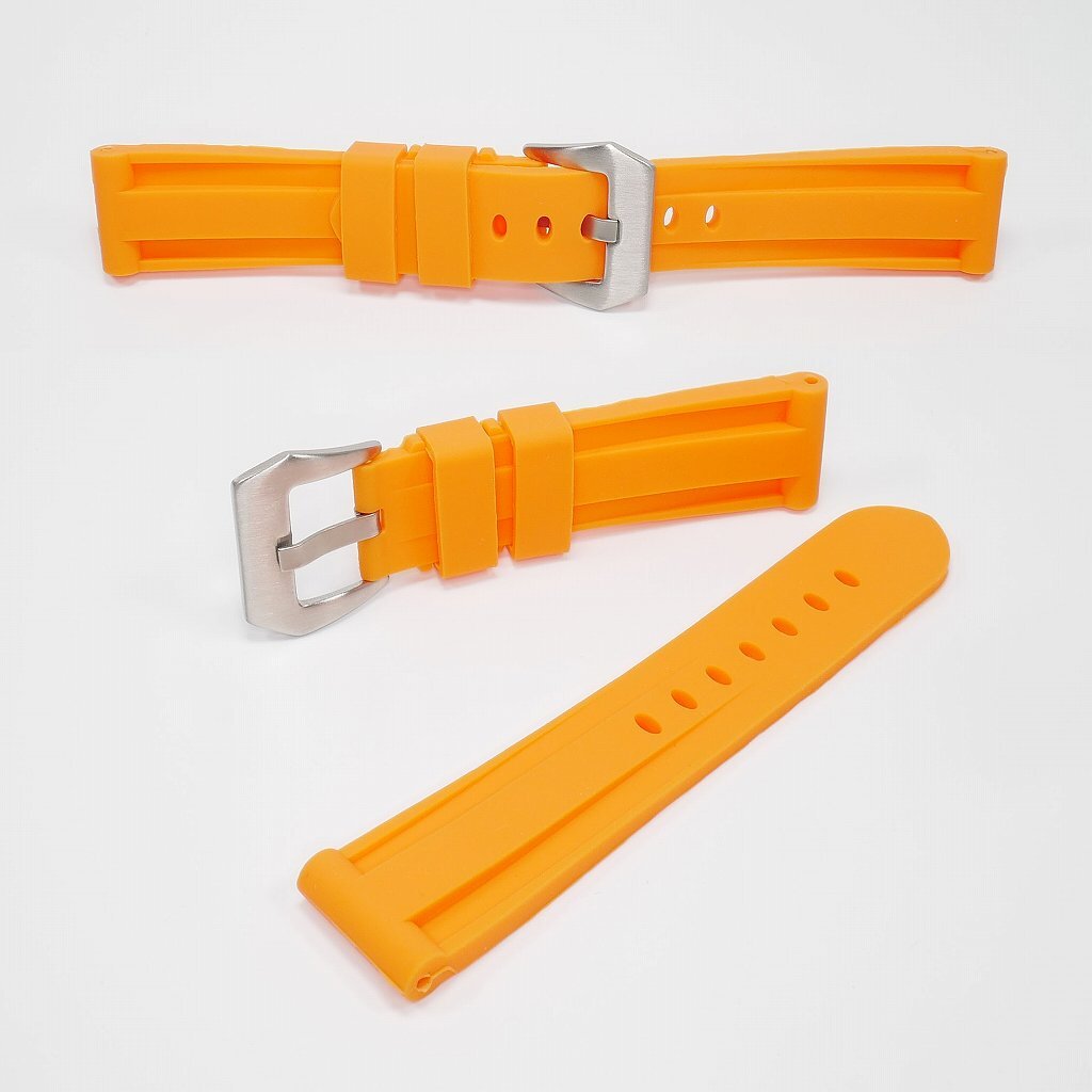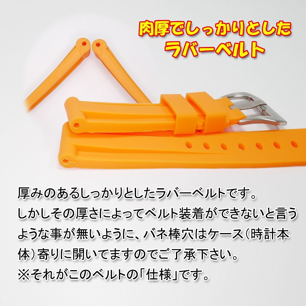 ・厚みのあるしっかりとしたラバーベルトです。しかしその厚さによってベルト装着ができないと言うような事が無いように、バネ棒穴はケース(時計本体)寄りに開いてますのでご了承下さい。(※それがこのベルトの「仕様」です。)