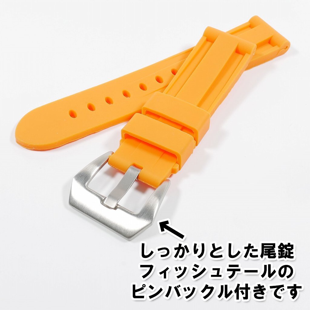 ・肉厚なラバーと強固なフィッシュテールのピンバックルが装着に安心感を与えます。