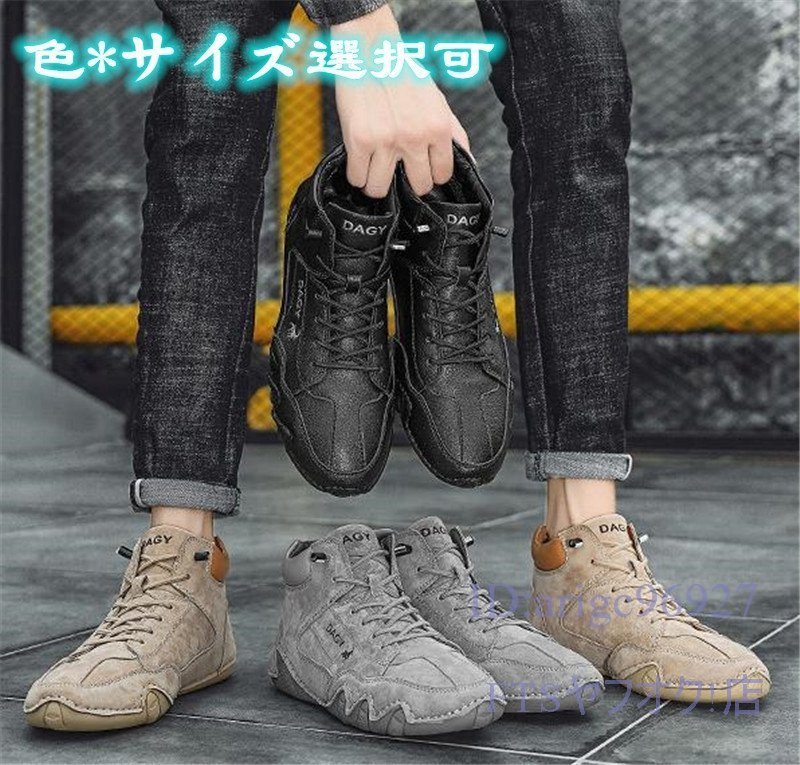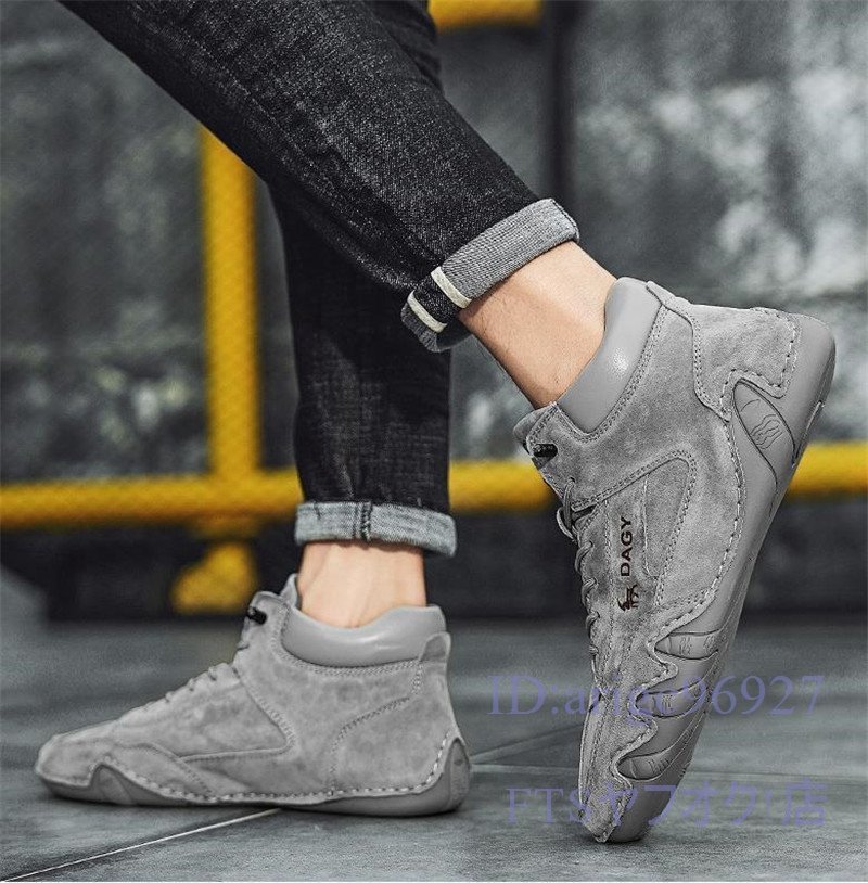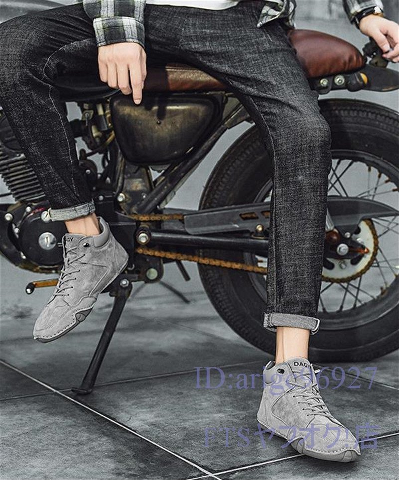 T719☆新品スリッポン ハイカット マーティンブーツ ショートブーツ メンズ スニーカー バイクウエア ドライビング グレー 26.5cm
