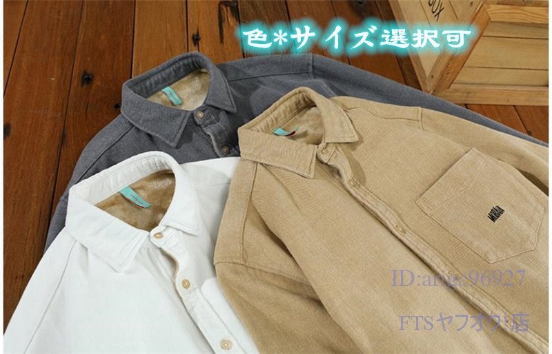 T886☆新品シャツジャケット 裏フリースシャツ ウエスタンシャツ 裏起毛ボア メンズ* オックスフォード トップス クリーミーホワイト 3XL