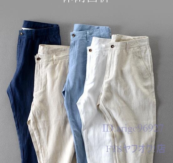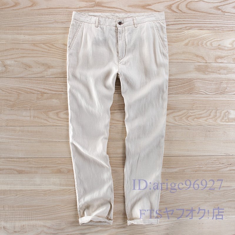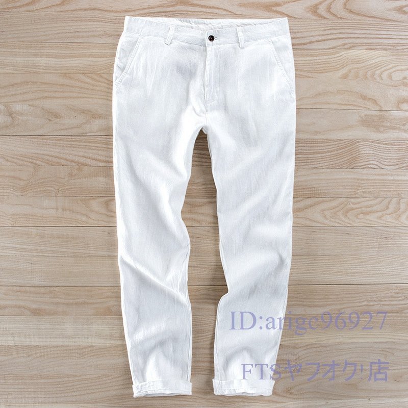 A2700☆新品リネンパンツ サマーパンツ 通気 麻100% イージーパンツ メンズ* チノパン ボトムス ズボン 白 W38