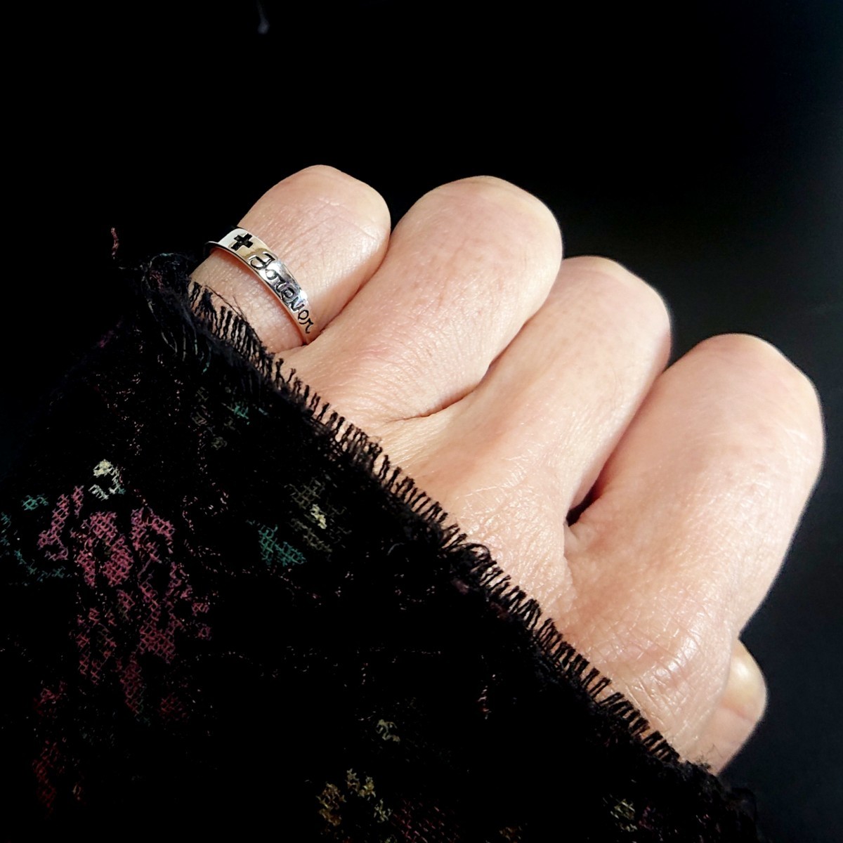 十字架のワンポイントが可愛いメッセージ入りのピンキーリング☆