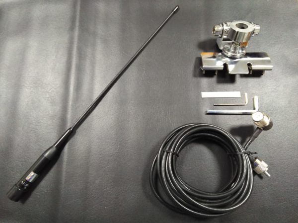 【送料無料■即決】ソフト モービル アンテナ 基台 銀 同軸ケーブル 5m 3点セット 144 / 430MHz 帯 M型 航空 無線 2バンド アマチュア