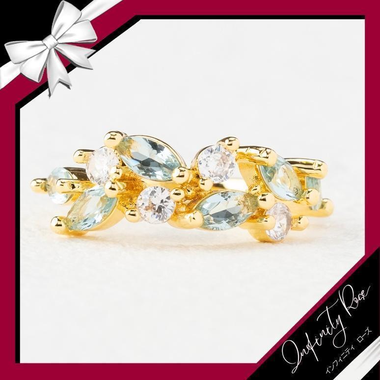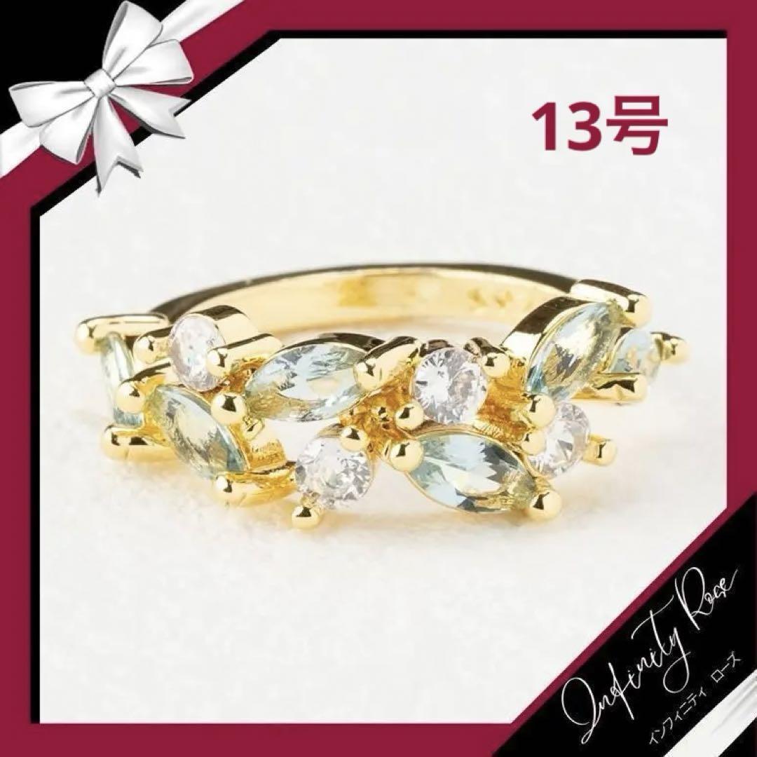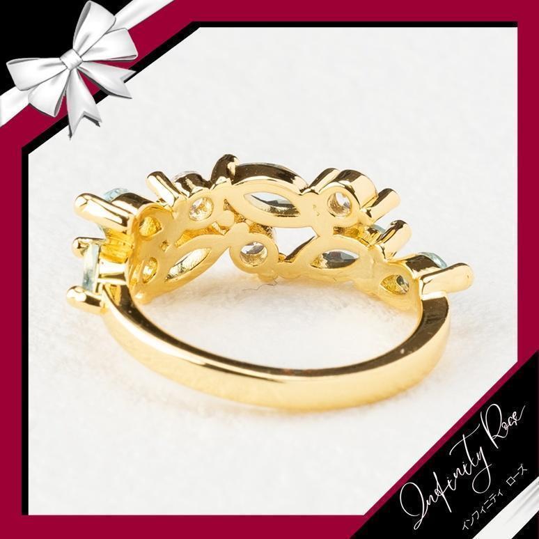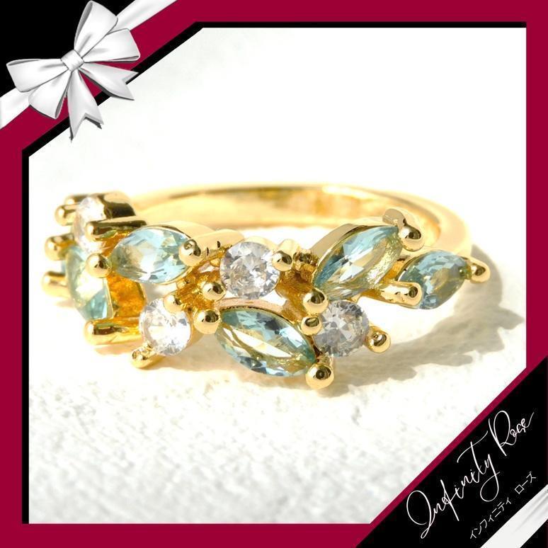 (R034G)13号 ゴールド×ブルークリスタル爽やかリング 高価爪留め仕様指輪