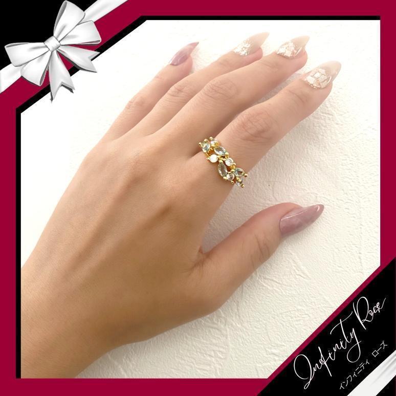 #ゴールド×ブルークリスタル爽やかリング