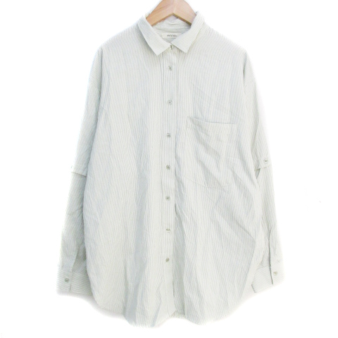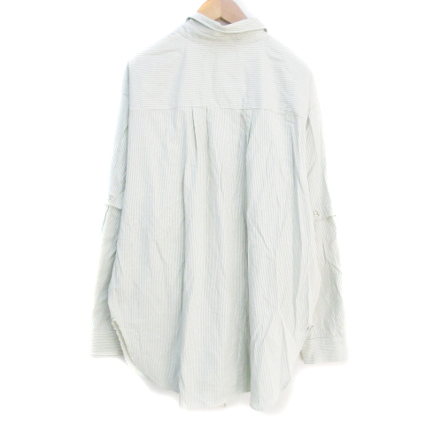 ヴァニーユー VANNIEU シャツチュニック ブラウス 長袖 五分袖 2way ストライプ柄 F 白 緑 ホワイト グリーン /FF9 レディース