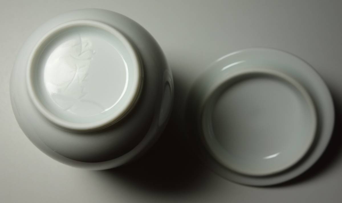 昭和バブル期高級茶器 白磁 手彫り・芍薬(美人を彷彿)図 蓋付き 煎茶器