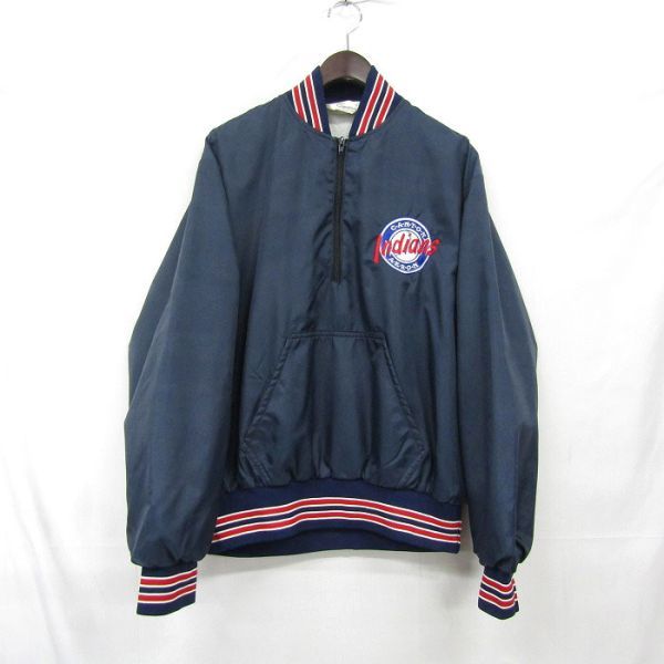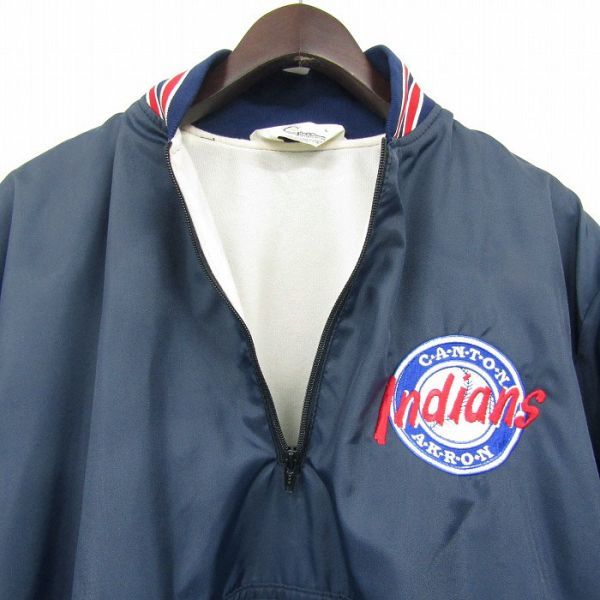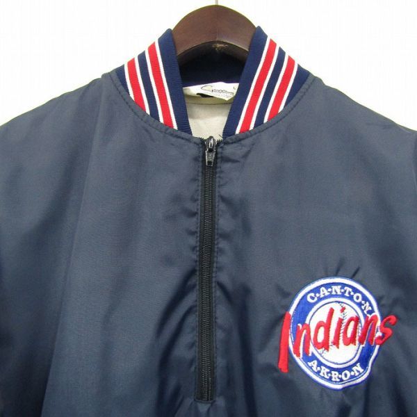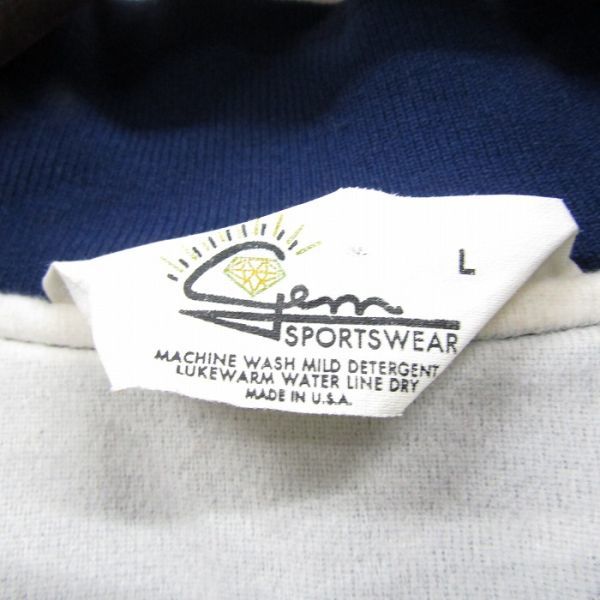 ★USA製★ サイズ L Gem Sportswear プルオーバー ジャケット スタジアム ジャンパー ハーフジップ ネイビー 古着 ビンテージ 3F1604