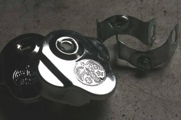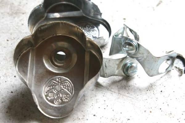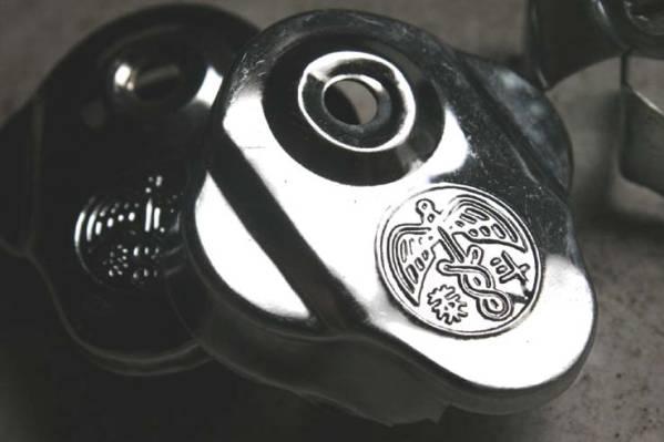 1940s、50年代の自転車や自転車バイクのコッタ―ピンカバーです。 当時の品ですが、とても美品ですよ。 画像のように金具も付いています。 商品は、メッキされたアルミ製です。 良い造りの品ですよ!” ボテッとして重みあります。 長期間未使用です。 未使用品で、きれいな品です。 画像が全てになります。細密な現状確認無しで出品のため見落としもあるかもしれません。あくまで画像でご検討方、宜しくお願します。ご覧の様に、使用には問題ないです。