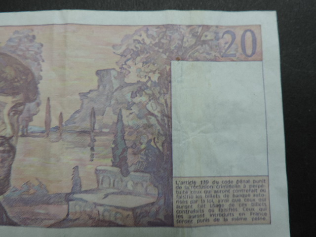 ★BANQUE de FRANCE★ 1987 VINGT FRANCS 20 FRANCS 中古品
