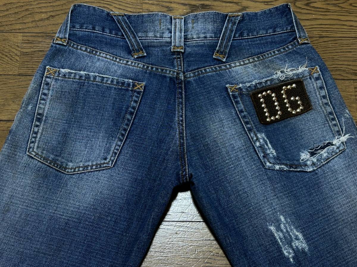 ※DOLCE&GABBANA ドルチェ&ガッバーナ ZDP70 スタッズメタルロゴプレート デニムパンツ インディゴ イタリア製 46         BJBD.B
