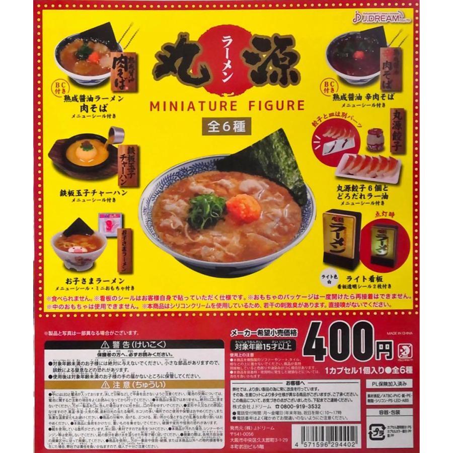 J.DREAMから出ました「丸源ラーメンミニチュアフィギュア」全6種のうち「熟成醤油ラーメン 肉そば」になります。400円ガチャにしては細部まで精緻な造形となっております。都内ガチャマシーンで出回ると即売り切れとなるほどの人気品で、やっと見つけた際に回しダブった分を出品します。内袋未開封、リスト付きです。
