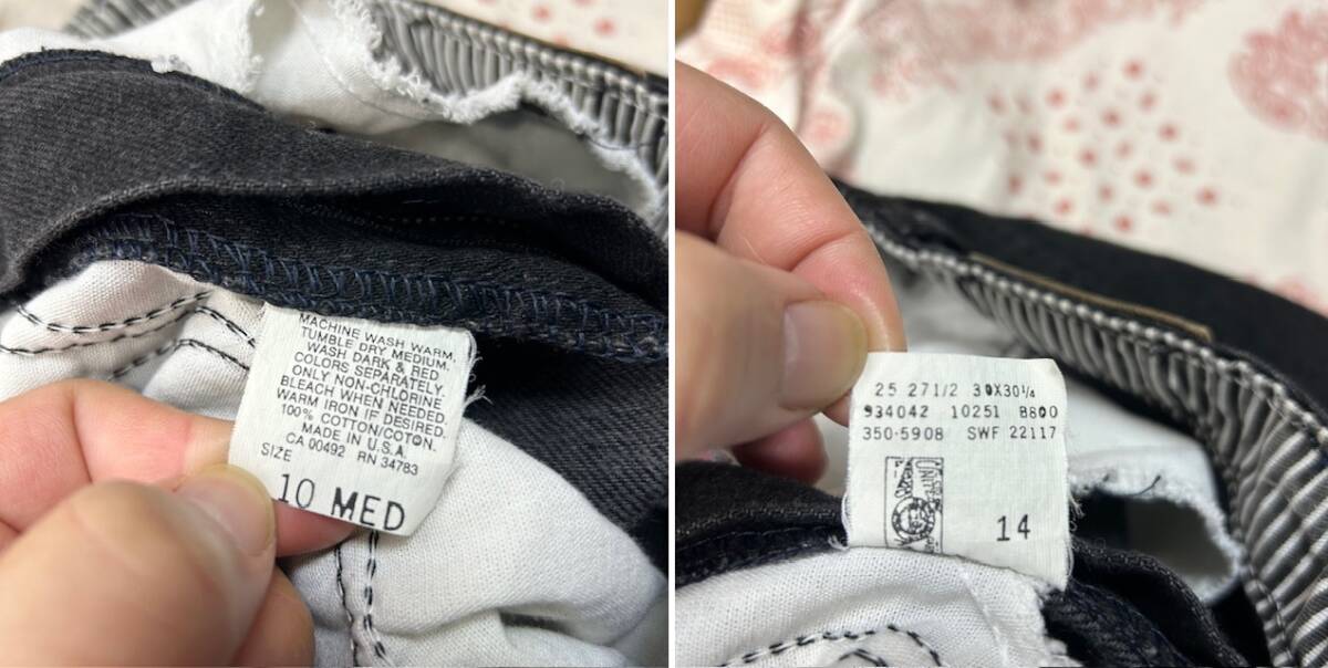 ●商品説明・・・アメリカ古着になります。80年代頃のオールド・ヴィンテージ Leeのブラックデニムパンツです。股上深め(ハイライズ)のゆったりしたワイドなお尻・太もも周りから裾にかけてテーパードしたややルーズ感のあるリラックスして履いていただけるシルエット感です。made in USA (アメリカ製)です。分厚すぎないミドルオンス(中厚手)程度のデニム生地で、通年履いていただけるようなデニム生地です。サイズ表記は10で、レディース物ですが、ウエストサイドのゴムも経年で伸びており(ゴムのないデニムとお考えください)程よくボリューム感も有り、レディースの方はベルトで絞って、メンズもサイズが合えば履いていただける感じです。