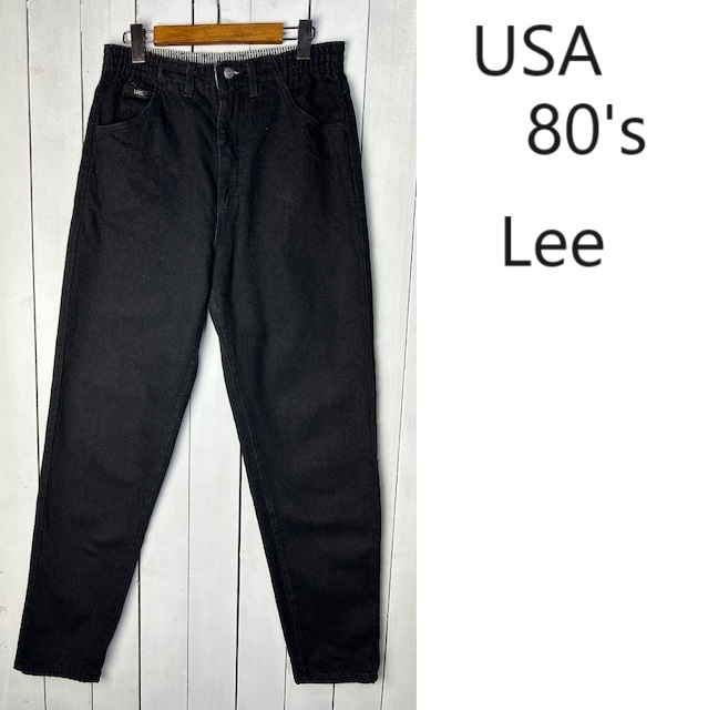 USA古着 80s USA製 Lee ワイドテーパード ブラックデニムパンツ 10 オールド ヴィンテージ リー アメリカ古着 黒デニム M~L ●209