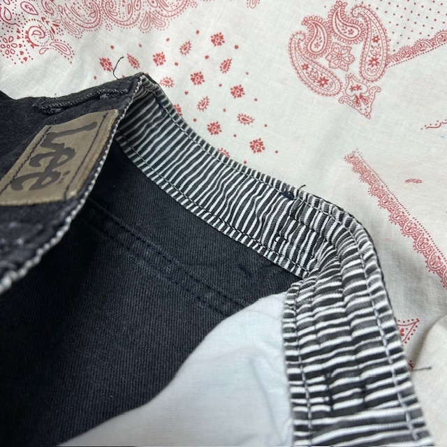 ●状態・・・USEDの古い物になりますが、丁寧に履かれていた感じで、多少の着用感・サイドゴムの経年による伸び・後ろの膝上アタリに一カ所横糸の抜けは見られますが、USEDデニムの風合いで、目立つ汚れやダメージなどは見られず、USEDを着られる方でしたら問題なく履いていただける、綺麗な状態だと思います。